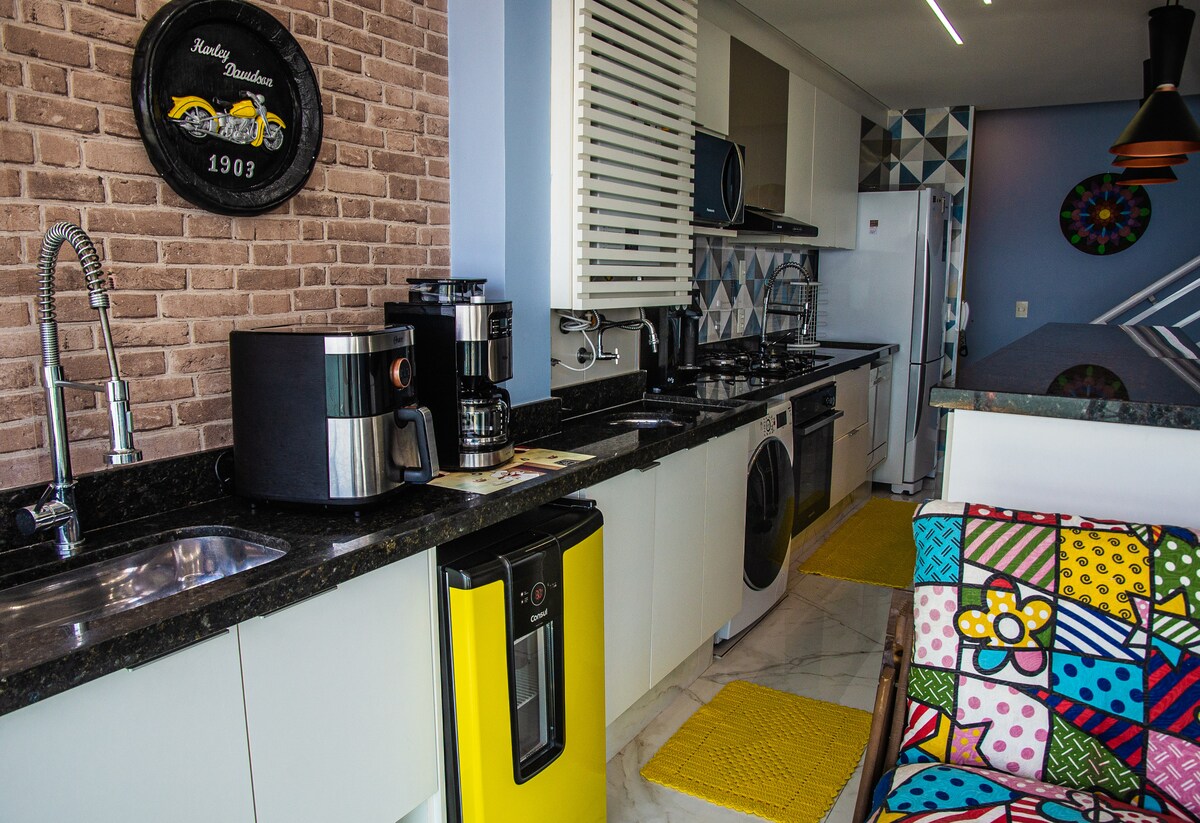 Un apartamento recién reformado y decorado que combina diferentes elementos de las playas más diversas del mundo, ubicado en el corazón de Gonzaga, junto al centro comercial Miramar. Cerca de varias opciones de ocio (3 centros comerciales, cines, restaurantes y tiendas) y ubicado a menos de 200 metros de la playa, ¡definitivamente no perderás el tiempo atascado en el tráfico! Equipado con televisión, estufa, nevera, microondas, cafetera y lavadora, es ideal para que lo aproveches al máximo con practicidad.