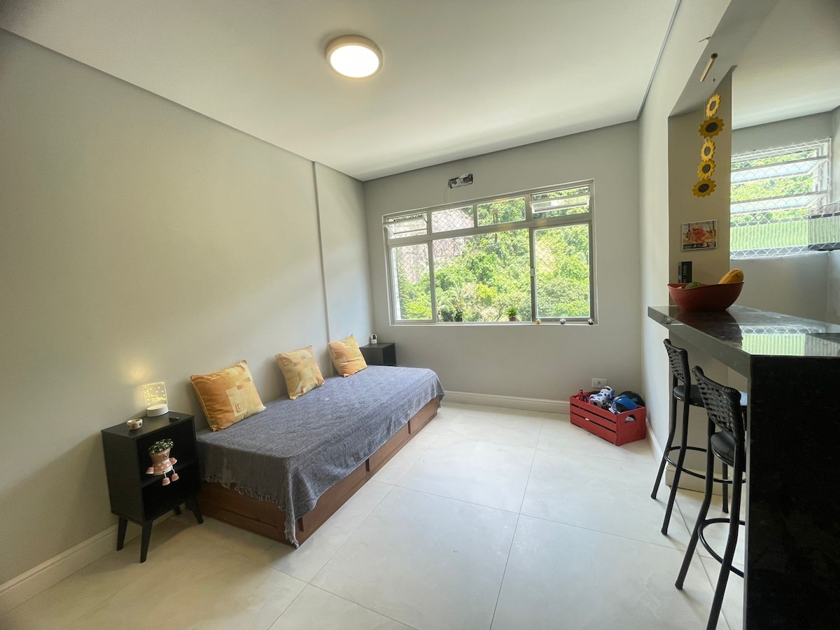 Encante-se com este sala living amplo, em prédio frente ao mar, totalmente reformado para sua estadia ser inesquecível. Conforto garantido com uma cama de casal e duas de solteiro, sendo uma beliche. A cozinha é equipada com fogão, micro-ondas e airfryer novos. Banheiro com iluminação aconchegante. Redes de proteção em todas as janelas oferecem segurança para as crianças, permitindo momentos de pura tranquilidade e alegria à beira-mar.