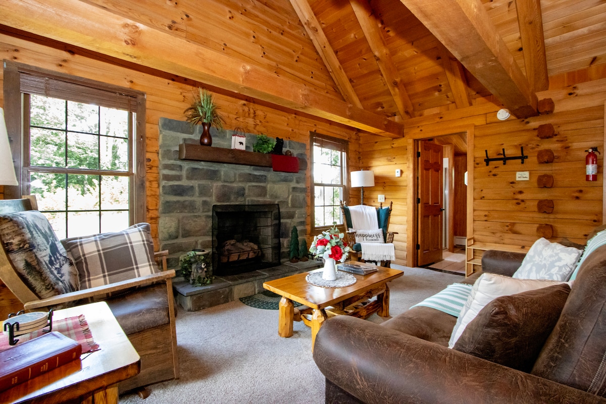¡Retírate a Fresno Escape! Una cabaña privada con jacuzzi durante todo el año, perfecta para relajarse. Escondido entre pinos y rocas en el corazón del país amish, donde el ocasional clip-clop de caballos y buggies añade encanto. Diseñada como un depósito de ferrocarril, la casa amueblada artísticamente muestra intrincadas piedras, azulejos y vidrieras personalizadas. La cocina incluye electrodomésticos y utensilios de cocina, y la zona exterior ofrece una parrilla de propano. Se proporciona leña de cortesía para la chimenea.