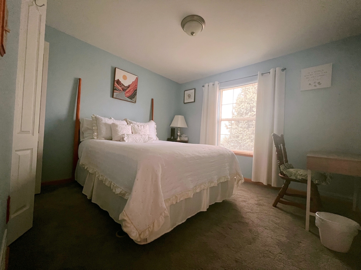 Nuestra hermosa casa ofrece un dormitorio con baño privado que tiene una combinación de bañera y ducha. La habitación también tiene una cocina totalmente equipada con microondas, mininevera, horno tostador, placa eléctrica, Keurig, utensilios, ollas y sartenes, platos, tazas, tazones, café, crema y azúcar. Hay una cama tamaño queen muy cómoda, dos cómodas, un escritorio con silla y un televisor inteligente de 55 pulgadas. Tendrás una entrada independiente y entrarás por la puerta principal. Es un espacio completamente privado sin zonas comunes.