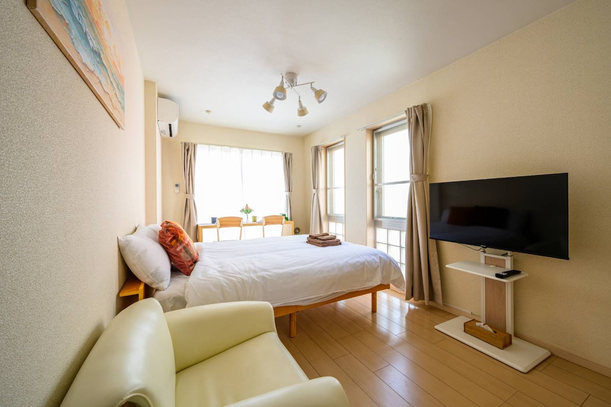 Estudio Japandi tranquilo y nuevo|Cerca de JR・metro|Lavadora y secadora|Ascensor|Almacenamiento de equipaje