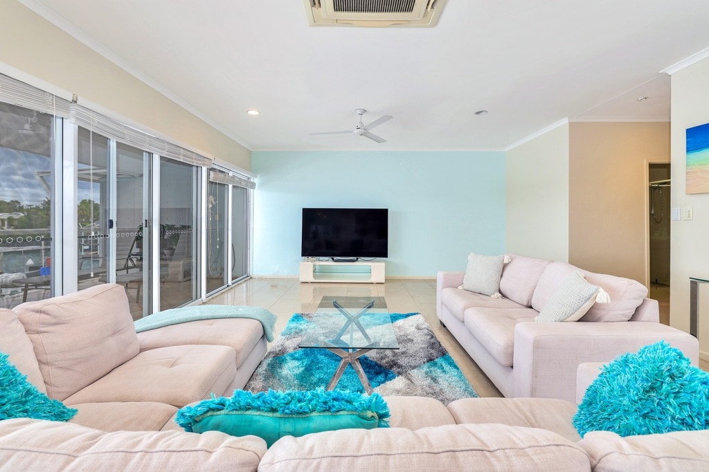 Bienvenido a nuestro Beachside Retreat en Cullen Bay, una espaciosa casa adosada de 2 dormitorios, 2 baños y 1 aparcamiento a pocos pasos de la playa. Con una cama tamaño king en el entrepiso y un sofá cama en el salón, es perfecto para familias o grupos pequeños. Disfruta de una zona privada con césped para pícnics, una piscina de inmersión y un patio al aire libre con tumbonas. Ubicada a pocos pasos de los populares restaurantes de Cullen Bay, esta propiedad ofrece una escapada relajante y flexible junto a la playa.