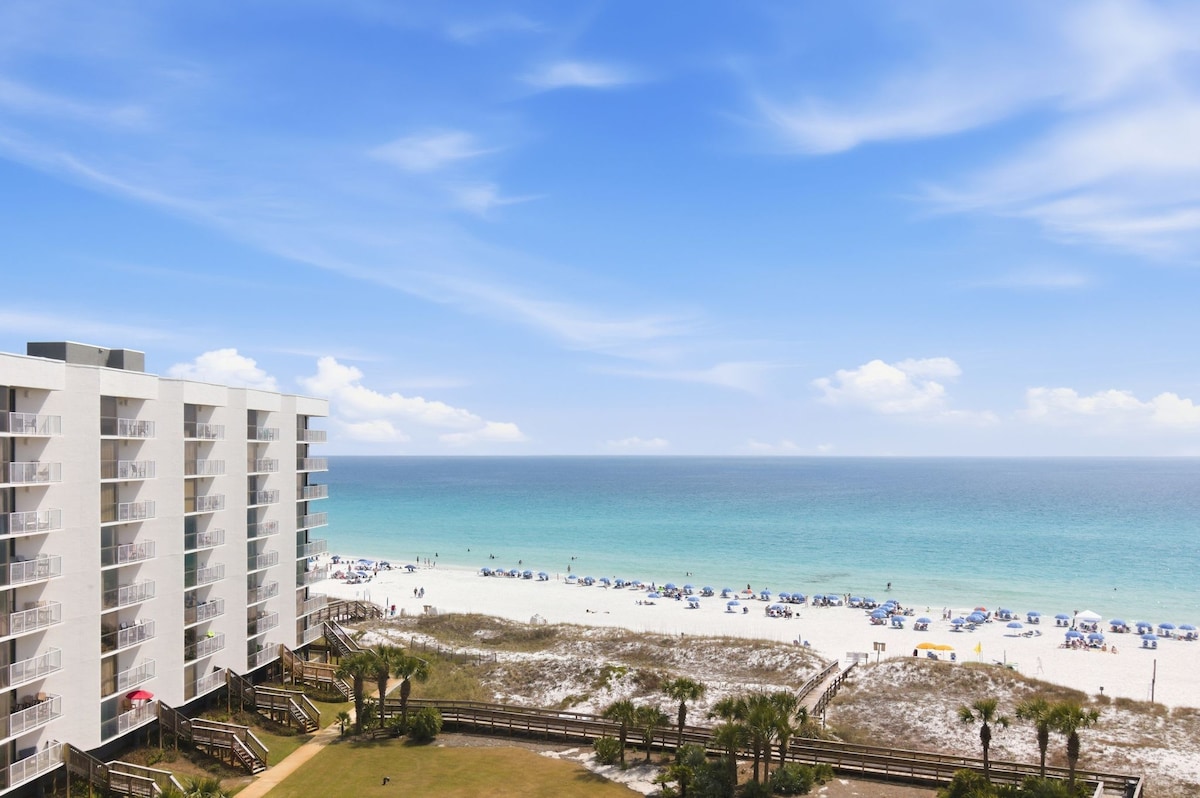 8th fl. stylish open studio w/stunning VIEW, beachfront in Sandestin Resort between Destin & 30A. 🛺 Golf cart with 5+ nts. NEW Pool & Hot Tub. West Elm furniture & King size bed w/ocean view. Sleek Kitchen w/dishwasher & Keurig. WiFi, 55” smart TV. Washer/dryer. Huge balcony to gaze @ the sea. Enjoy the beach, dining, shopping, trails, golf & entertainment all without leaving the resort. Tram pass & Gym. Perfect for honeymoon, baby moon, girls trip, solo travel or lil family vacay *NO animals