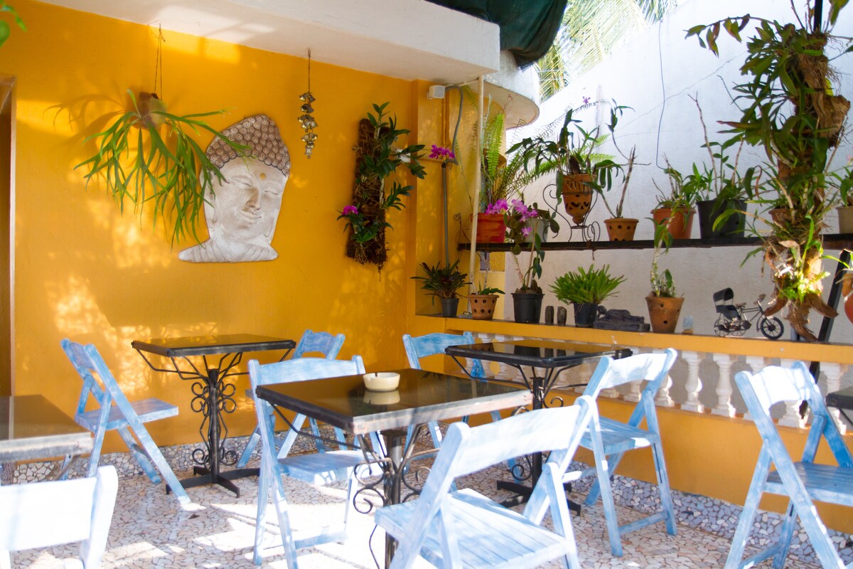 Una joya escondida en el código postal más elegante de Panjim. Nuestro ático 2BHK tiene una terraza privada y está a pocos pasos de la playa de Miramar. Un santuario goano rodeado de vegetación; la sala de estar de planta abierta y amplia se transforma en un espacio elegante después de la puesta del sol con iluminación ambiental de diseño. El famoso paseo marítimo, tiendas de comestibles y cafeterías están a solo un paseo. Fontainhas y casinos están a pocos kilómetros en coche. Disfruta de wifi de alta velocidad si trabajas desde casa. PD: ¡Busca pavos reales por la mañana!