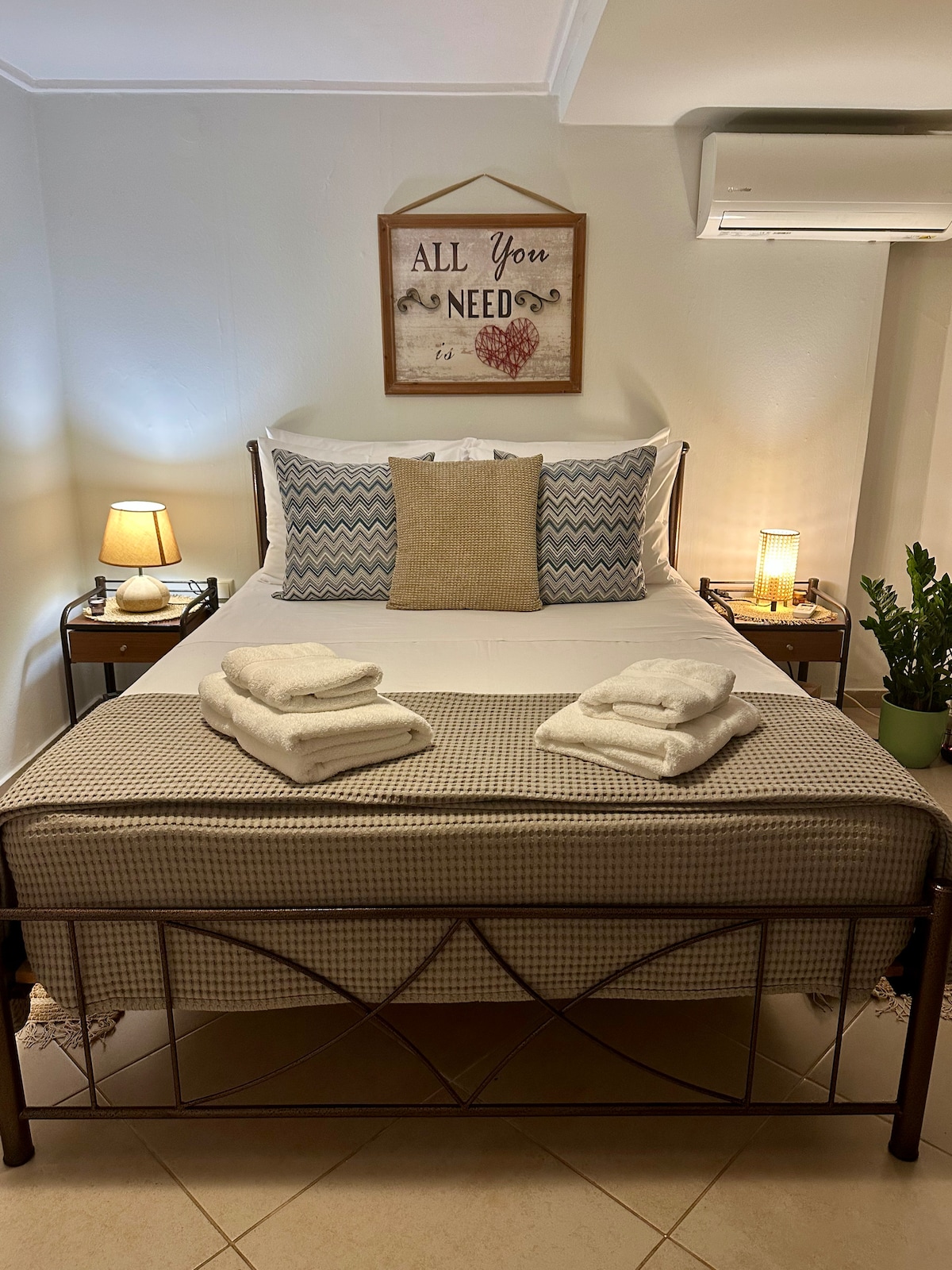 Número de registro 00001558460 Estudio moderno de una habitación en el centro de la ciudad en una ubicación tranquila y excelente muy cerca de la Marina, a quince minutos a pie de la plaza Georgiou, con jardín privado y aparcamiento privado que puede alojar cómodamente a tres personas, con capacidad para hasta 4 personas (una cama doble y un sofá cama para dos) pero limita el espacio, en un edificio de una década que cumple con todas las normas antisísmicas modernas con wifi gratuito, aire acondicionado.