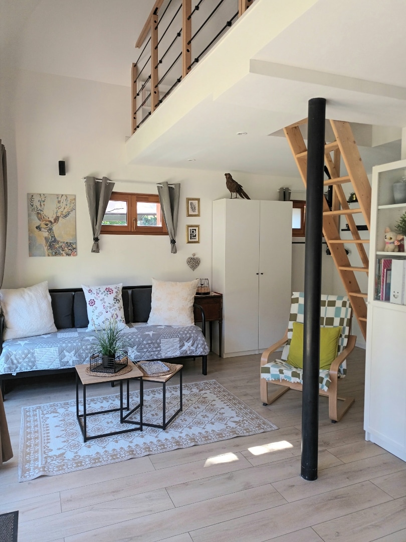 Dúplex: 1 dormitorio estilo chalet en la planta superior (con 2 camas de 80 x 200 cm, o 1 cama de 160 x 200 cm), 1 sala de estar con 1 cama nido (2 camas de 90 x 190 cm), 1 TV, abierto a 1 cocina equipada, 1 cuarto de baño (ducha, lavabo, inodoro), 1 terraza, equipamiento para bebés. Ubicación ideal para realizar actividades en la naturaleza. Para los ciclistas, acceso a rutas interesantes: el Gran Ballón, el puerto de Oderen, el Ballón de Alsacia... Las bicicletas se pueden guardar en un garaje cerrado con llave y se pueden limpiar.