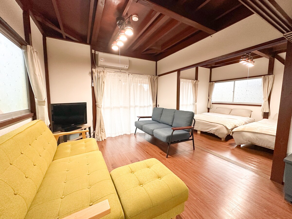 ¡Perfecto para familias y grupos! Alójate cerca de fuentes termales famosas y disfruta de relajantes baños. Hay estacionamiento gratuito disponible. Una zona de barbacoa cubierta (1000 ¥) te permite asar incluso en días de lluvia. Toda la casa es para un solo grupo, lo que garantiza la privacidad y la comodidad. Inmediaciones: Rodeado de naturaleza con santuarios, parques, pesca, avistamiento de aves y senderismo. Por la noche, disfruta de un cielo lleno de estrellas. Totoro está al lado, una delicia para los niños y los fans de Ghibli. También hay paseos con vistas a la montaña Kirishima cerca.