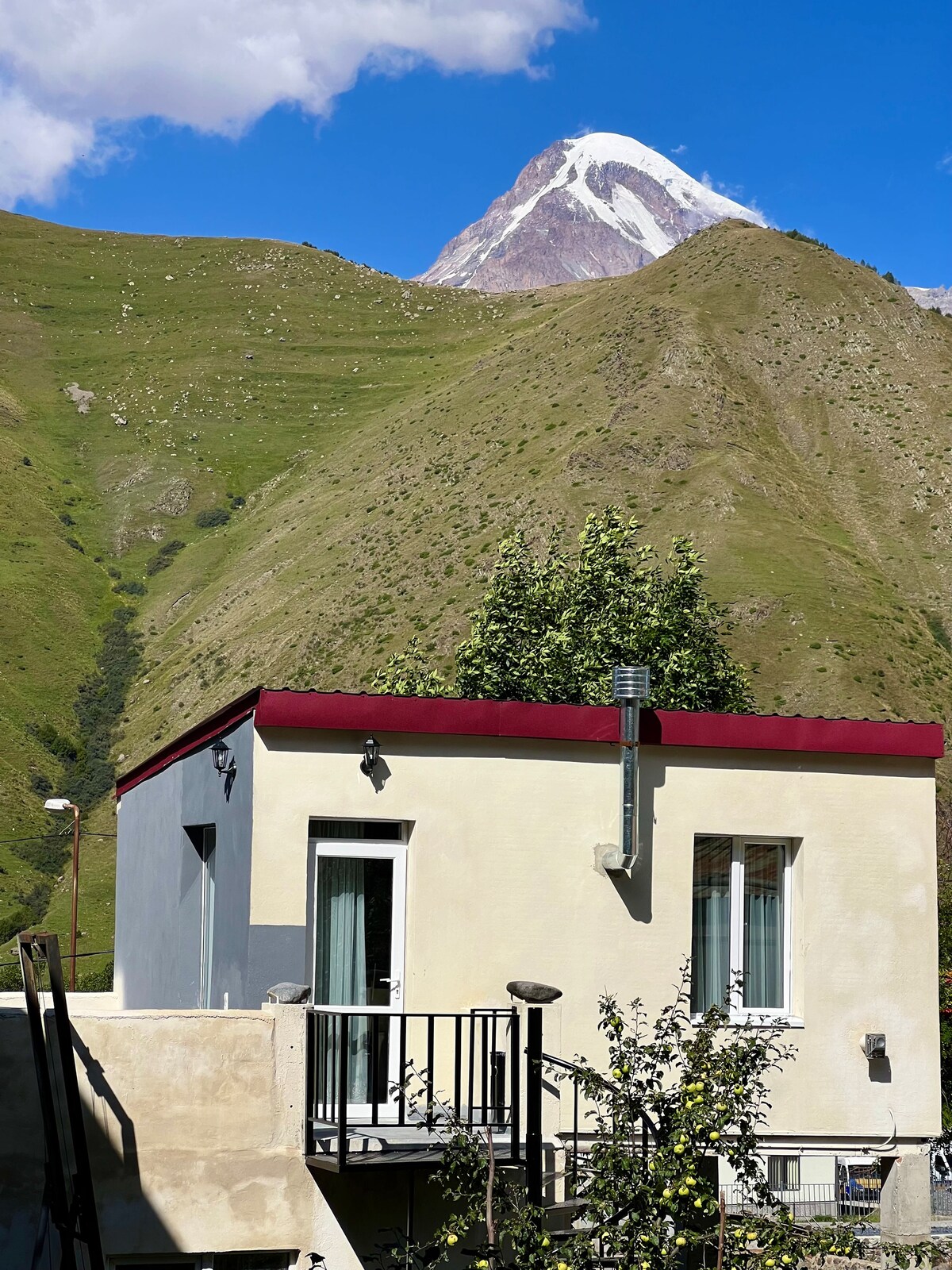 Hola, querido huésped, me gustaría informarte de que nuestra casa de madera es de nueva apertura, respetuosa con el medio ambiente y fresca, y está situada cerca del centro de Stepantsminda. La casa tiene las mejores vistas, nuestros huéspedes pueden disfrutar de las increíbles vistas de la Iglesia de la Trinidad de Guergueti y el monte Kazbegi. Lo pasarás genial en este tranquilo alojamiento en el centro. Nuestros huéspedes tendrán un entorno increíble para relajarse y crear el mejor estado de ánimo. ¡De nada! ¡Te deseo unas vacaciones agradables!