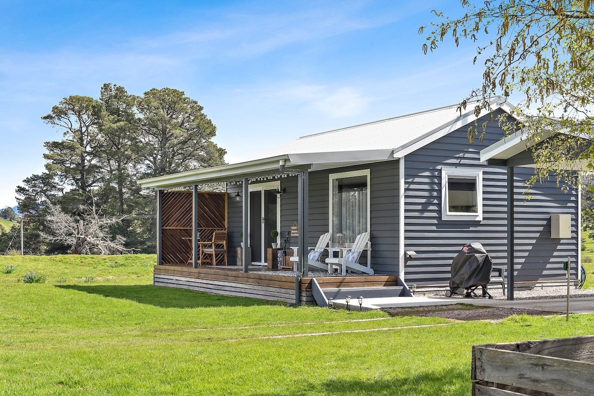 Apartamento boutique, suelos de madera, estufa de leña, SmartTV, wifi NBN ilimitado, cocina con horno, fogones, nevera, microondas, cafetera de cápsulas, olla de cocción lenta, etc. Cama tamaño king en el dormitorio, sofá en la sala de estar. Baño moderno con calefacción por suelo radiante, bañera independiente y ducha. Vistas espectaculares alrededor de la propiedad de las colinas y cadenas montañosas en 2 lados. Cubierta, hermosos jardines, zonas de estar y barbacoas en 6 acres. Animales amigables. Disfruta de la paz y la tranquilidad de nuestro escondite.