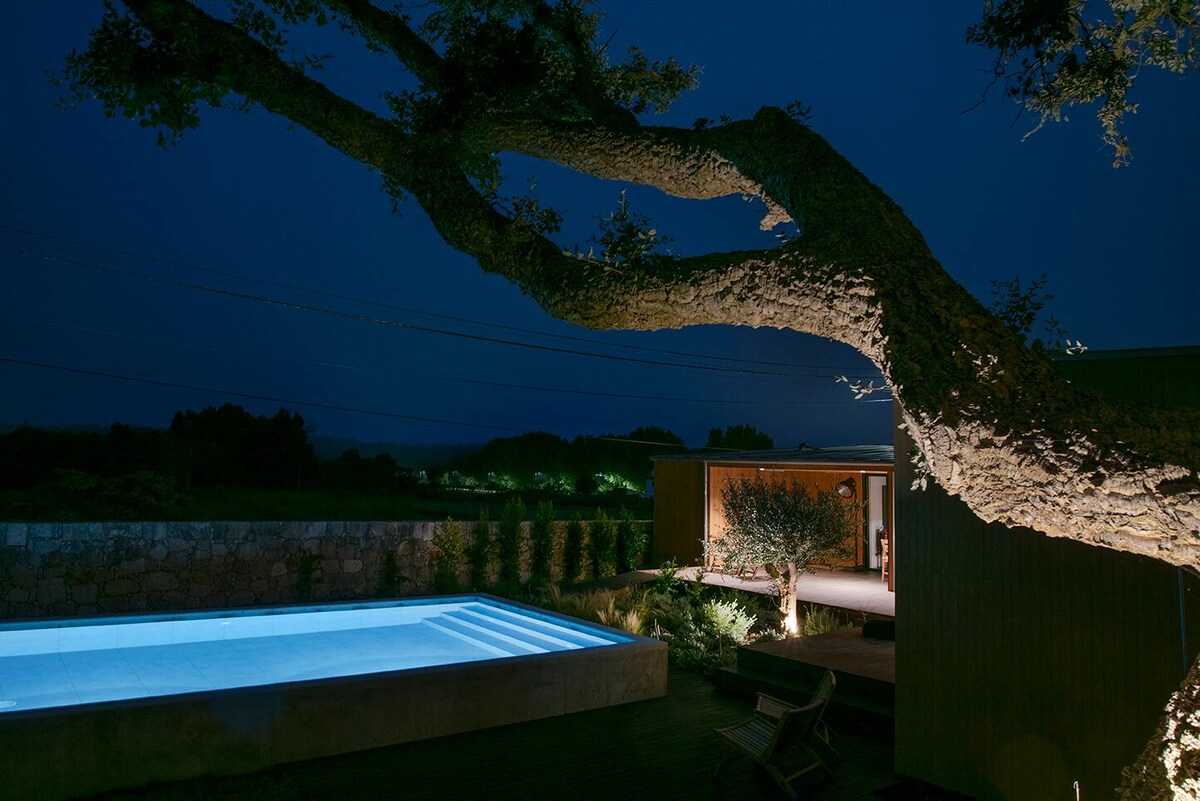 Casa insertada en un espacio natural. La decoración respeta el ambiente y los espacios exteriores son amplios. Ideal para todos tipo de viajantes que buscan disfrutar de la naturaleza y relajar con un clima agradable. Venga y disfrute de nuestra hospitalidad en un ambiente maravilloso. Durante la reserva, la piscina es privativa de los clientes. Portugal:Caminha- 10',Viana Castelo- 25', Porto- 55', Braga-50' España:Guarda- 30',Baiona- 40',Vigo- 50',Santiago C.- 90