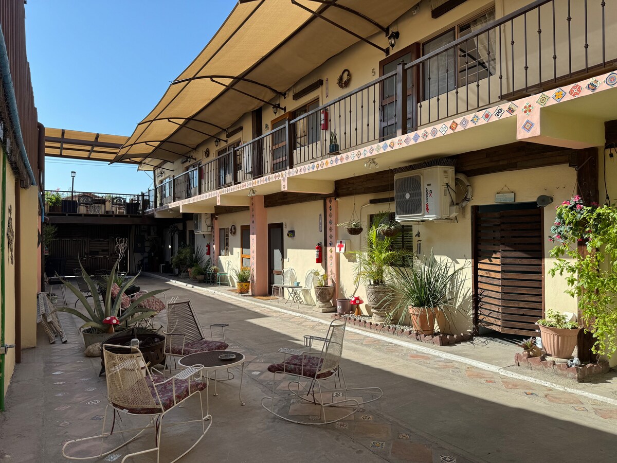 Amelia Lofts is located in Frontera, Coahuila, Monclova's sister city, just minutes away. We offer beautiful rooms in a private and shared space. Enclosed behind a large gate, our spacious patio overlooks the nine rooms spread over two floors. Each unit offers every comfort, has on-site staff, and is designed to provide you with the best experience. Ideal for those seeking vacations, business trips, security, privacy, and exceptional service. We won't disappoint.