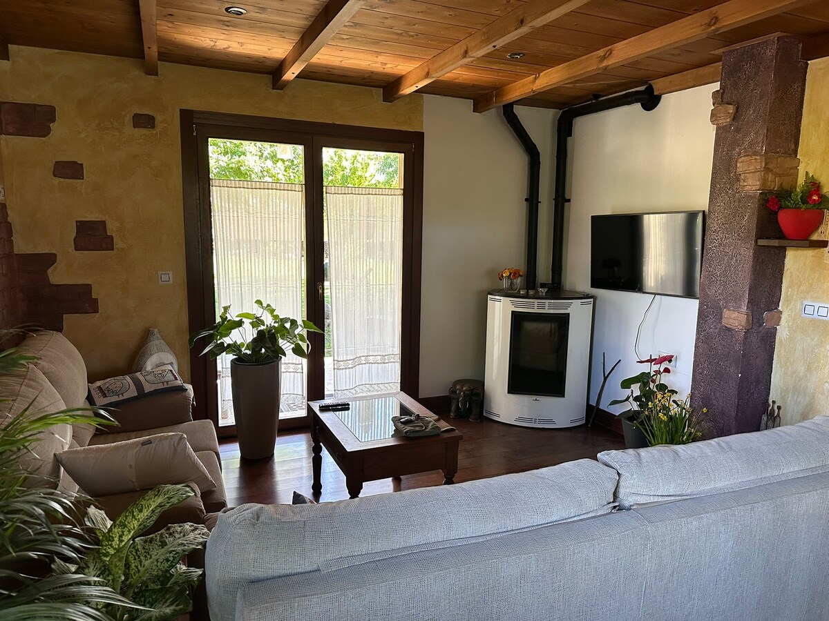 Relájese con toda la familia en este alojamiento tranquilo. Casa completa con 3 dormitorios con baño privado, jacuzzi climatizado, piscina, lavandería y cocina totalmente equipadas, garaje, zona de barbacoa. Inserta en un ambiente tranquilo y silencioso, donde se puede disfrutar del sonido de la naturaleza. Tu mascota es bienvenida en nuestra casa.