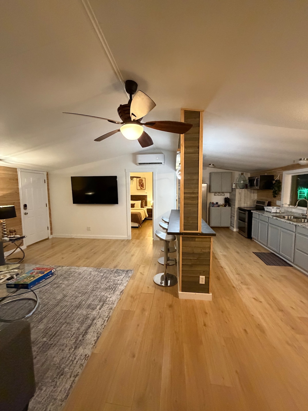 ¡Bienvenido a su acogedor refugio privado ubicado justo al lado de la autopista 287/FM 1125 cerca del lago Amon Carter! Esta encantadora minicasa ofrece fácil acceso y un amplio estacionamiento gratuito, perfecto para vehículos y remolques de gran tamaño. En el interior, disfruta de la comodidad de una pequeña cocina donde puedes preparar tu café por la mañana, recalentar las comidas o poner algunas palomitas de maíz en el microondas. Relájate en un sofá de cuero mientras ves la Smart TV de 50" y descansa en la cama ajustable Queen Tempur-Pedic para disfrutar de un sueño perfecto 😴