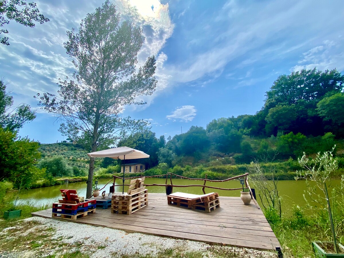 Camera con bagno,giardino recintato con cucina esterna accesso indipendente in agriturismo a conduzione familiare come una volta. Location ideale per un soggiorno rilassante tra le colline toscane, a pochi km da località balneari come Marina di Cecina, Castagneto Carducci, Bibbona e Isole. La camera con cucina in veranda aperta con vista sul Biolago Naturale dell'agriturismo. Gli ospiti possono usufruire del solarium e Barbecue sul lago e del prezioso contatto con gli animali. noleggio Bike