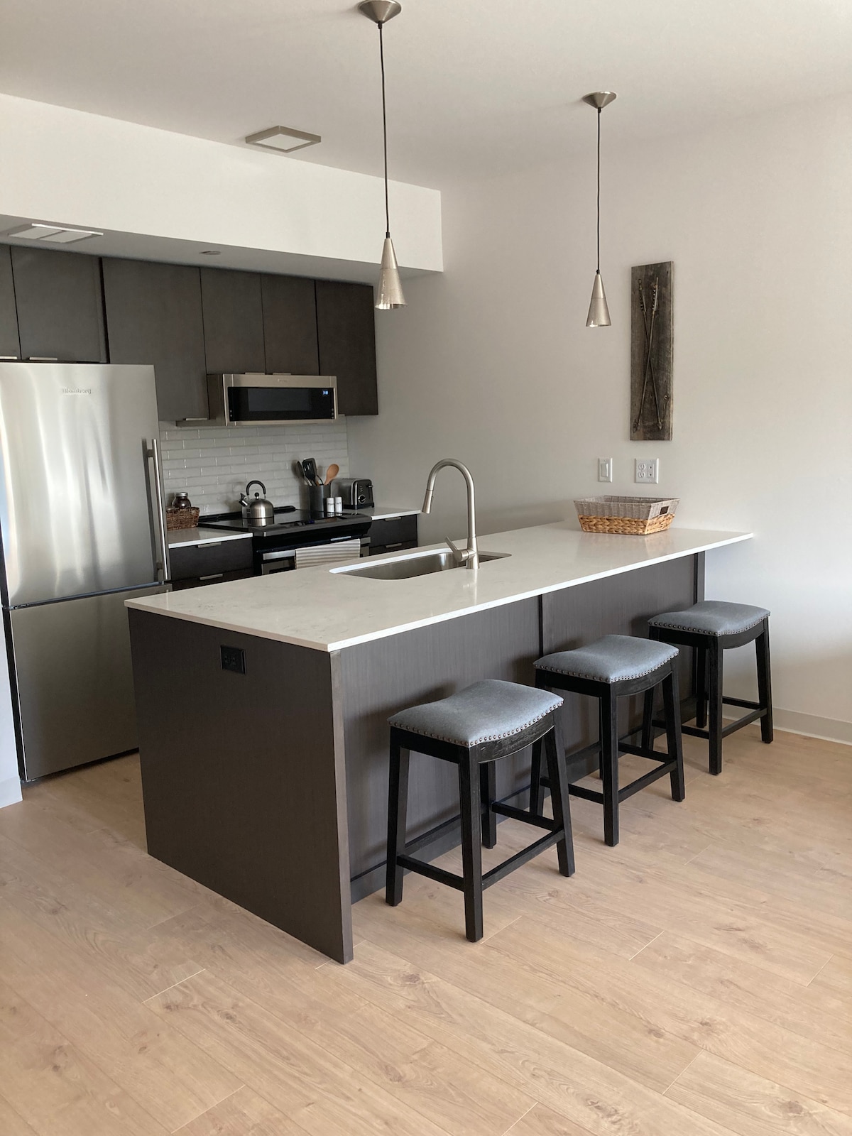 This 2 bedroom, 2 bathroom condo features 180-degree views of the Bridger Mountains. The oversized north-facing window baths the room in natural light. It has a full kitchen, living area, 1 king bed, 1 bunk bed, 2 full baths, walk in closet, and laundry. Outdoor roof top entertaining space for guests. The condo is upstairs from Ponderosa social club, Ceremony salon and spa, and Bourbon BBQ. Walking distance from lots of local favorites including Freefall Brewery, The Elm, and Access Fitness.