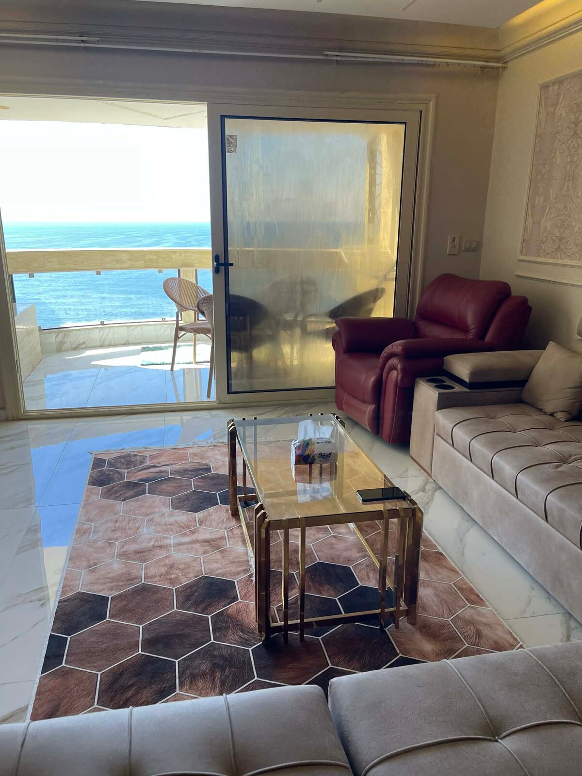 Wake up to the sight and cool breeze of the Mediterranean. This unique luxurious coastal apartment with it's boho chic laid-back style, is all about comfort. Enjoy the majestic open view of the sea &the Montaza royal gardens. Our unique spacious place has all the amenities you are looking for, restaurants and cafes are within a walking distance &affordable beach access. We are offering you our private place to enjoy during the time we are forced to leave it, hoping you like it as much as we do.