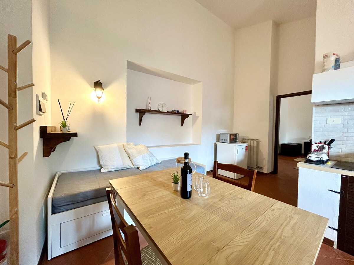 BIENVENIDOS A FIESOLE IN GIARDINO HOME 🌿 Disfruta de una estancia tranquila en Fiesole, la hermosa colina que domina Florencia. Una pequeña casa independiente con dormitorio, cocina/sala de estar y baño privado, completamente renovada y rodeada de naturaleza. El desayuno está incluido en el precio. En primavera y verano se sirve en la terraza panorámica en la azotea con una vista maravillosa.