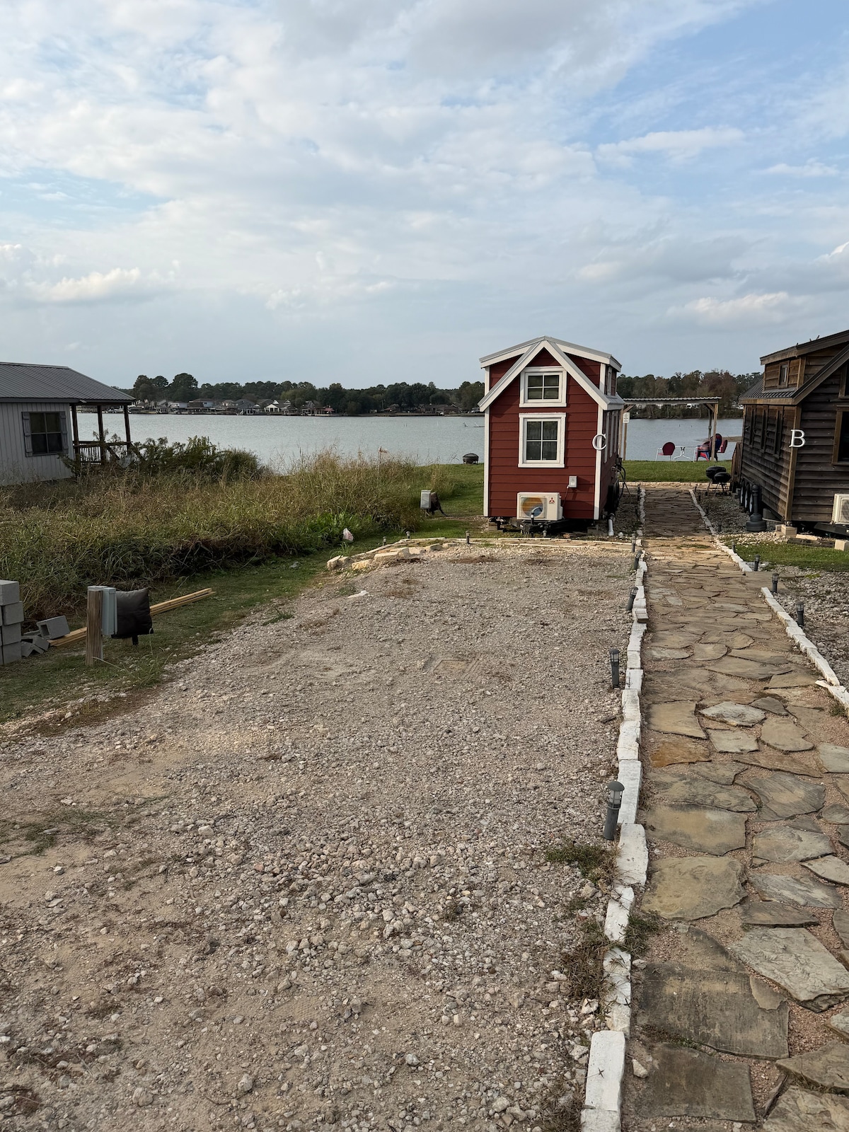 The simplicity & relaxation of our premium 399 Sq. Ft. tiny home is so refreshing and unique. This home sleeps four. It has a Queen size bed and a luxury pullout Queen sofa. The fully equipped kitchen is perfect to fix up your gourmet meals. The Bluebonnet is nestled beside our sparkling 1/2 acre pond with a fountain, ducks and fish. A wooded area behind and open fields out front brings a nice breeze across the porch. Makes for a perfect place to enjoy the sunset or stars!