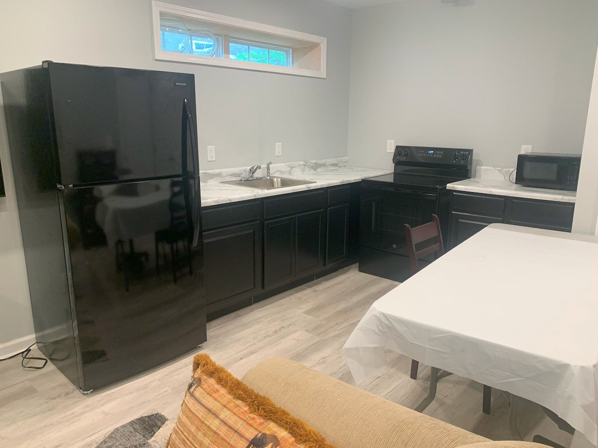Relájate en nuestro moderno estudio en un barrio tranquilo. Un dormitorio con una cama tamaño queen más una cama tamaño queen adicional en la sala de estar abierta. Disfruta de una cocina americana con cafetera, mininevera y comedor para 4, además de un baño grande y una amplia lavandería. Sal a un patio bellamente iluminado con mesa y sillas para 4, perfecto para las noches. A solo 5 minutos de la Universidad de Radford y del centro de la ciudad, a 25 minutos de Blacksburg y VT, cerca de restaurantes, cervecerías y rutas de senderismo.