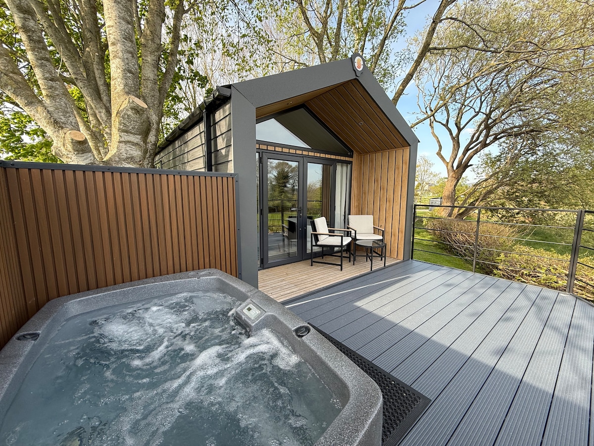 'Sycamore' is one of four luxury glamping retreats set in the Shropshire countryside. Immerse yourself in nature, & enjoy peace & quiet on the extensive decking overlooking beautiful countryside. Destress in your own private hot tub, relax on the outdoor seating, dine alfresco, & catch up with the latest TV shows with superfast Starlink WiFi. Sycamore, has an open-plan lounge/bedroom, king size bed, free standing bath & separate shower room & kitchen designed to offer luxury adult-only breaks