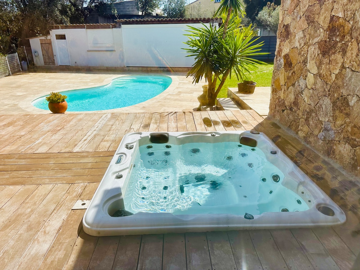 Parte alta de la villa, jacuzzi en terraza con vistas a Ile Rousse