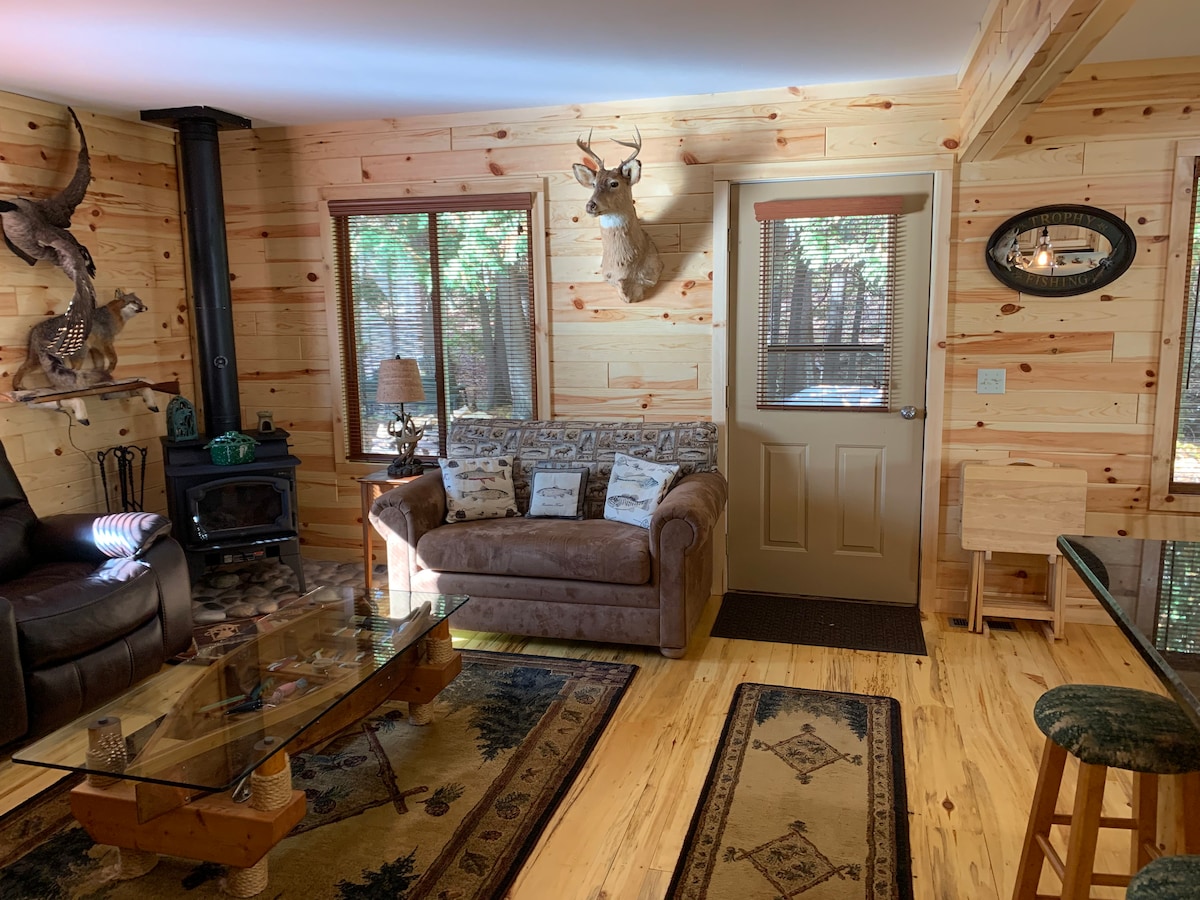 Disfruta de todas las estaciones en el norte. Siéntete como en casa en cuanto entres en nuestra acogedora cabaña. Situada en un arroyo de truchas de cinta azul y rodeada de bosques y senderos, es perfecta para una escapada romántica, un destino de aniversario o un retiro familiar. Disfruta de la carpintería personalizada en toda la cabaña y de las vistas al arroyo, el bosque y la vida silvestre en cualquier época del año. Ideal para pesca, observación de aves, kayak, piragüismo, senderismo, motos de nieve y paseos en todoterreno/ORV. No es apropiado para cazar.