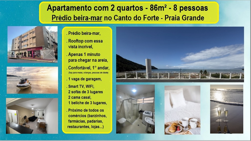 Guarda en la lista de deseos para no perderte nada ❤️ Un Airbnb perfecto en primera línea de playa con unas vistas impresionantes del atardecer 😍 • Es el lugar perfecto para tus vacaciones 🏖️🍹🏝️ ¡Estamos en el mejor y más alto de la zona costera! 2 piscinas climatizadas, Salón con desayuno los fines de semana, Gimnasio 2 saunas, Jacuzzi, Sala de juegos ✨ Un icono lujoso de la costa de Santos Airbnb impecable, Top 5%, súper equipado para que tengas la mejor experiencia. Contempla el paseo marítimo, el atardecer y las montañas con tus propios ojos