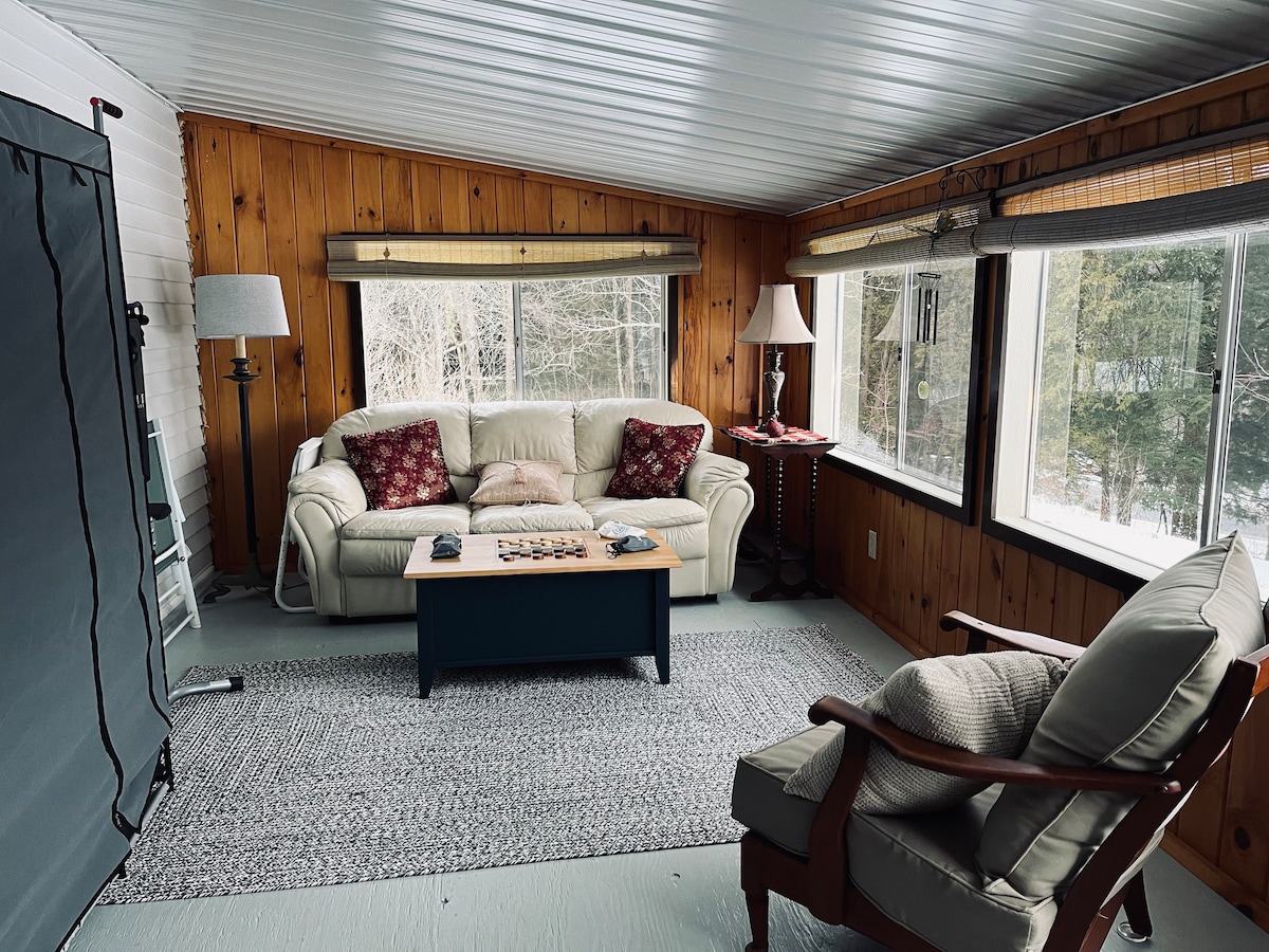 Cabaña Four Seasons a la que puedes entrar simplemente con tus maletas. Acogedora y cómoda, ubicada cerca de lagos, golf, rutas de senderismo y esquí de invierno. 2 adultos, 2 niños. ADULTOS adicionales 20,00 USD cada uno por noche. ¡Encontrarás mucho que hacer en el NEK!Dormitorio abajo y dormitorio arriba en el loft con 2 camas dobles. Información en la cabaña, cabaña llena de lugares a los que ir, ver y disfrutar. Construida recientemente. *Ten en cuenta que la reserva mínima es para 3 días. El máximo es de 7 días.*** Deja la cabaña tan limpia como la encontraste. Cabaña n.º 3