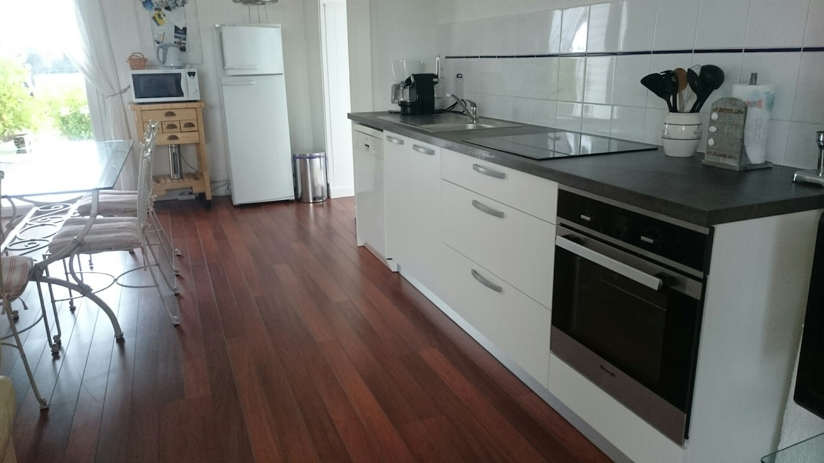 Le propongo alojarse en mi casa, donde dispondrá de un apartamento privado, una habitación doble independiente del salón amueblado con dos camas individuales, baño, cocina. Situado a 10 minutos a pie del pueblo de Carantec, y de la playa, servicio de transporte gratuito en verano para desplazarse, estación balnearia de la bahía de Morlaix, isla Callot y GR 34 para sus caminatas Barrio cerca del campo de golf y de la pista de tenis. Acceso gratuito para aparcar y local dedicado para asegurar sus bicicletas