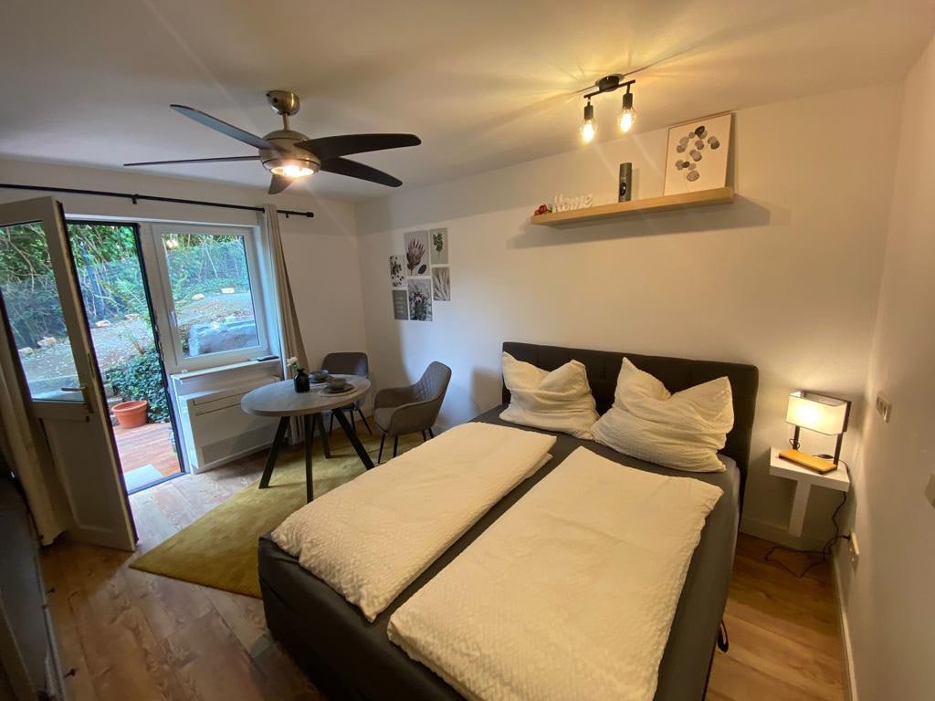 Si está buscando un apartamento moderno, espacioso y familiar en el centro de la Bergstraße con excelentes conexiones con Weinheim y Heidelberg, ha venido al lugar correcto. Con balcón privado en el lado sur, se puede disfrutar de las puestas de sol. La amplia habitación ofrece espacio para dormir, comer, trabajar y cocinar. El baño con ducha a ras de suelo y espacio de almacenamiento completa la oferta. Disfruta de la naturaleza en la puerta de tu casa y de la vida urbana en Heidelberg/Mannheim/Weinheim.