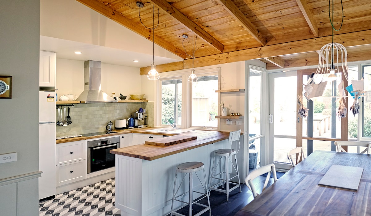 Combinando influencias modernas, francesas y de granja, nuestra porción escondida del cielo captura lo mejor de la región vinícola. Con alrededores de bosque remanente, una piscina climatizada con energía solar y proximidad a la playa de Merricks (6 minutos), todo está aquí para ayudarte a relajarte. Una barbacoa, un horno para pizzas, un fregadero al aire libre y dos zonas de estar en la terraza te invitarán a disfrutar de las noches agradables. Cerca se encuentra Merricks Store y muchas bodegas geniales.