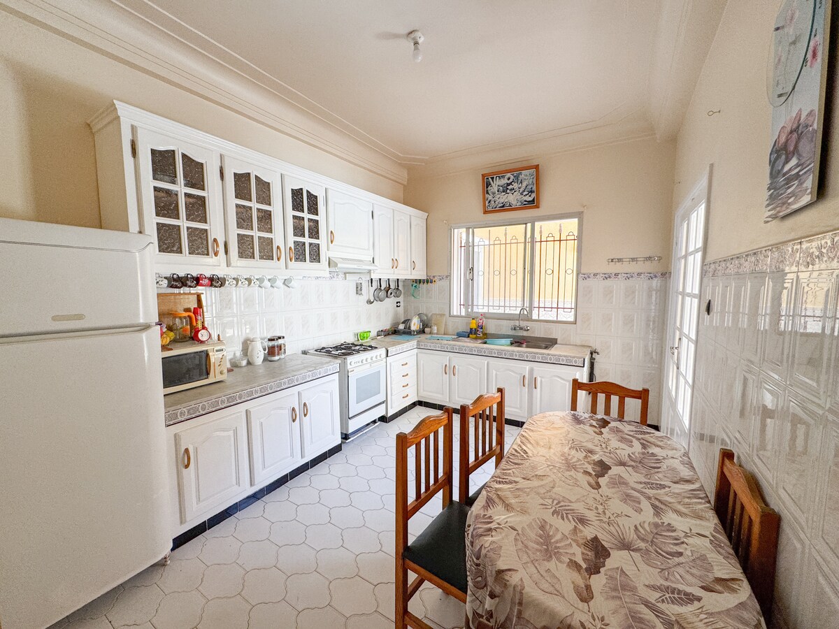 Bienvenido a nuestra encantadora casa familiar ubicada en Kharouba, Mostaganem ideal para unas vacaciones relajantes en familia . Esta casa de 2 dormitorios y una estancia está perfectamente diseñada para alojar hasta 6 personas, ofreciendo todas las comodidades necesarias para una estadía agradable. Ubicación: nuestra casa está cerca de muchas atracciones locales: -Playa a 700 m , Mostaland a 800 m y Parque acuático a 900 m - Fácil acceso a comercios, restaurantes y cafeterías - Transporte público
