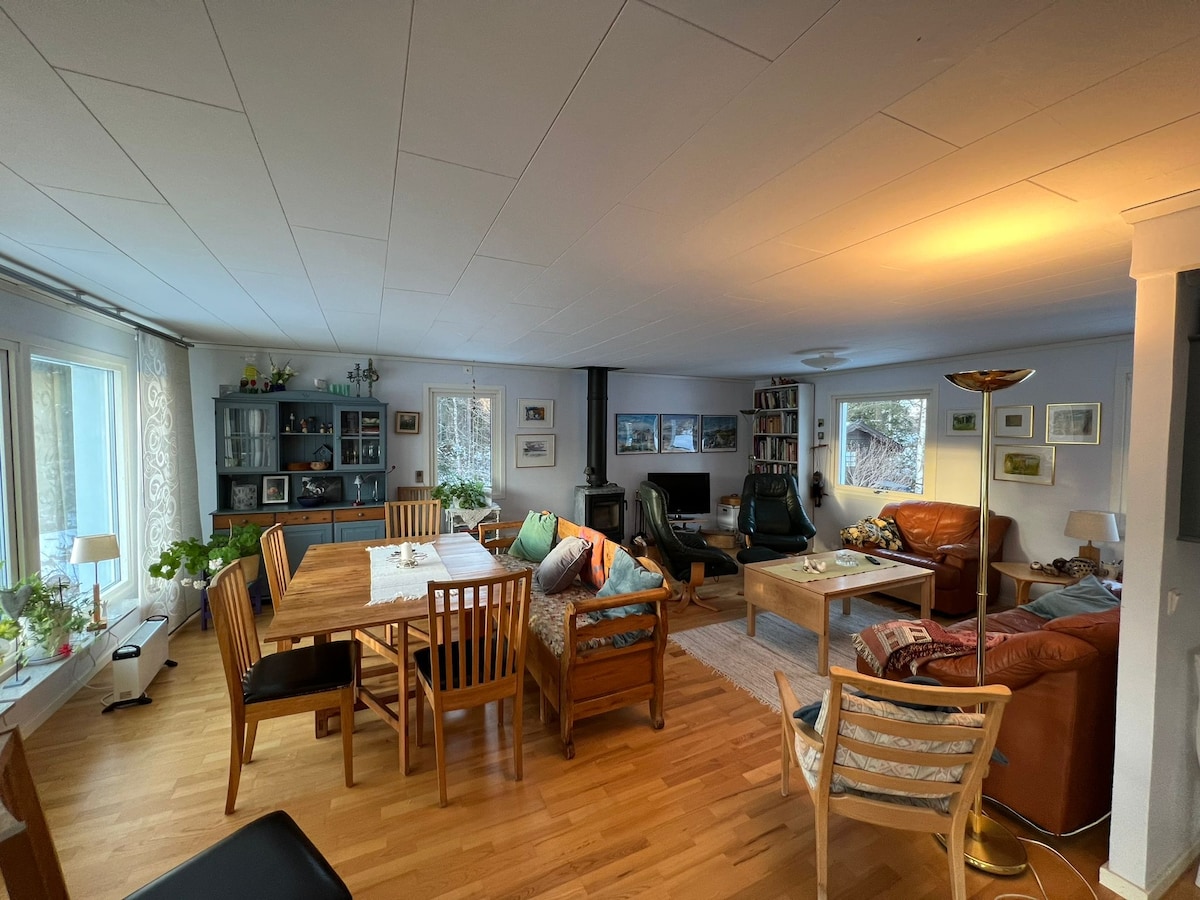 En una colina con vistas al hermoso archipiélago del norte de Vättern se encuentra nuestra moderna casa de campo de nueva construcción con grandes áreas de estar y una increíble altura de techo con una bonita entrada de luz. Aquí, un grupo/familia un poco más grande puede encontrar recuperación con proximidad a la naturaleza, pero aún así está a solo 10 minutos en coche de la hermosa pequeña ciudad de Askersund. El Parque Nacional de Tiveden está cerca de la larga playa de arena de Harjebaden. La casa estaba lista en otoño de 2018 y tiene todas las comodidades.