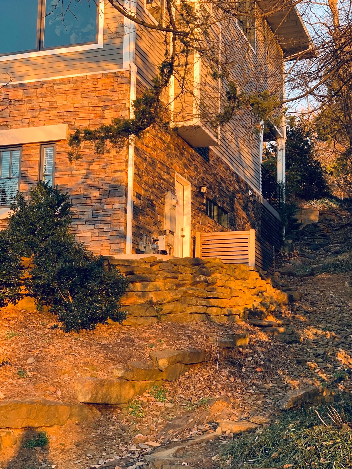 Keep it simple at this peaceful and centrally-located home. The guest house is located along a seasonal creek and nestled into the trees. Deer and wildlife are abundant even though you're located within a mile of lots of activities. This guest home is only 380 square feet but feels much larger with the loft and full bathroom and kitchen. Take advantage of the local grocery store just down the street, restaurants and university games. Or hike at beautiful Mt. Sequoyah and take in the view!