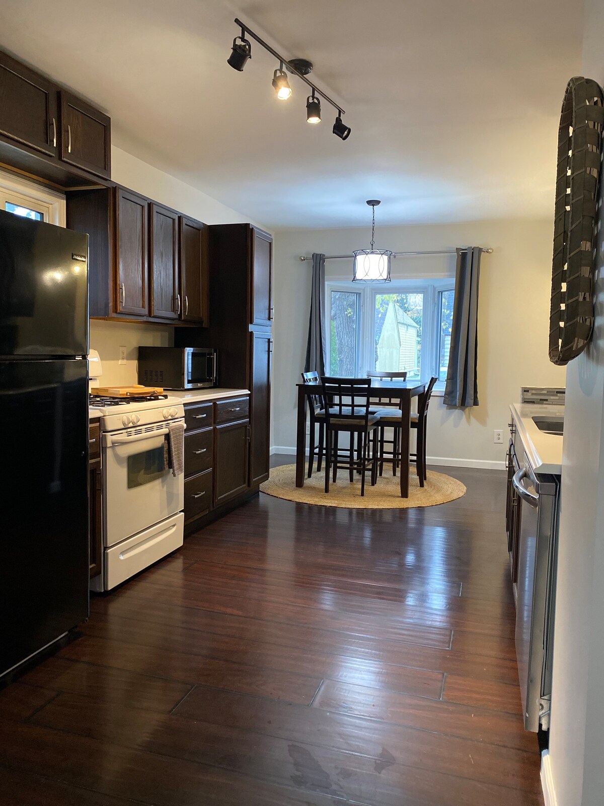 Relájate en este alojamiento único y tranquilo. Esta casa de 3 pisos, 3 dormitorios y 2 baños acaba de ser renovada y se encuentra a poca distancia a pie de los servicios de la ciudad, lagos cercanos y atracciones locales. El piso principal tiene suelos de madera, cocina completa, comedor, rincón para desayunos o espacio de trabajo, 2 dormitorios con camas queen y televisores, y 1 baño. El nivel superior tiene 1 dormitorio con 1 baño, lavadora y secadora en el nivel inferior, con área abierta para almacenamiento, etc. Patio trasero grande y tranquilo con chimenea. Puede acomodar a una familia grande o a un grupo pequeño, hay colchones inflables disponibles si es necesario. Ideal para estancias cortas o largas.