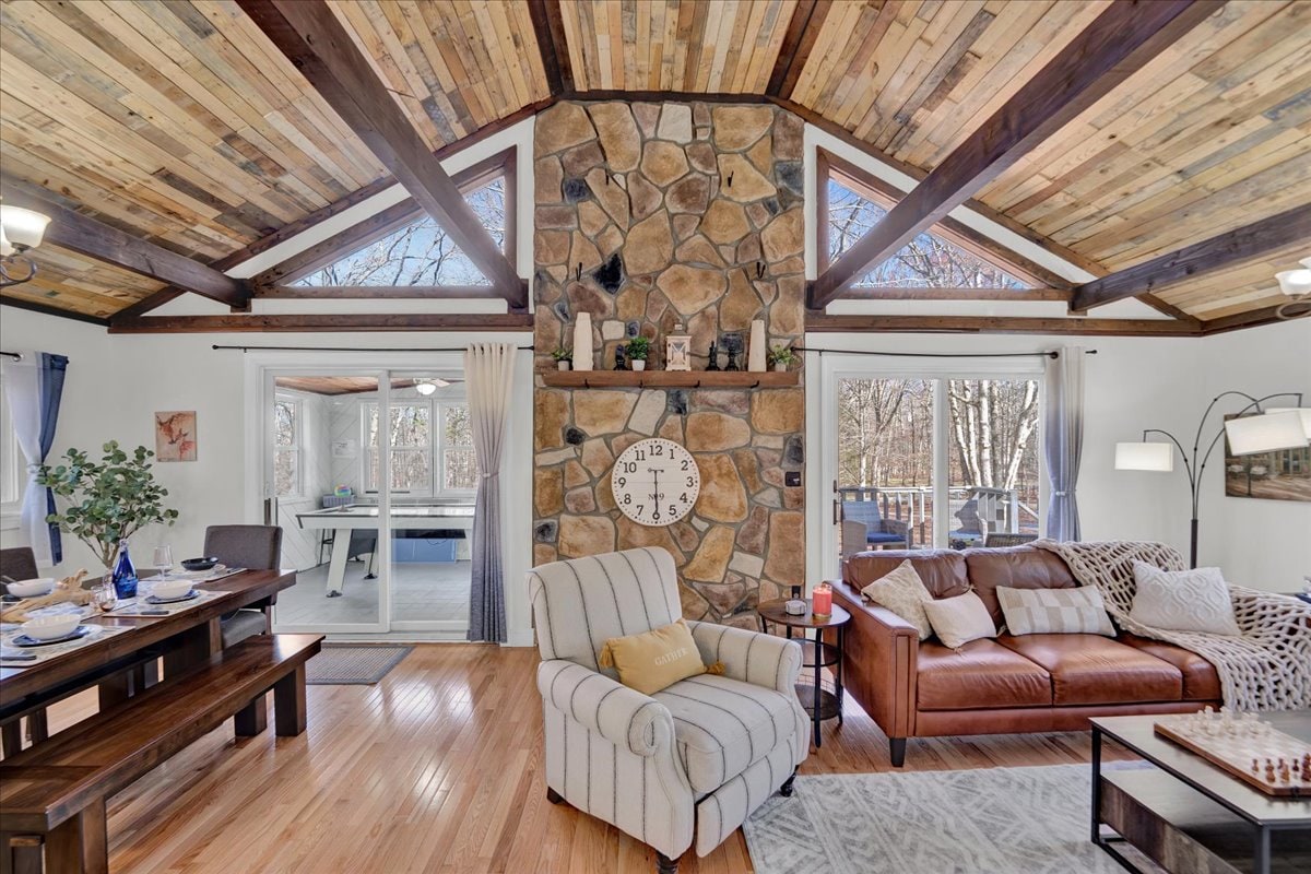 Bienvenido a Rose Marie, este tranquilo refugio es una combinación perfecta para amantes de la naturaleza, románticos y familias pequeñas. Esta antigua cabaña de caza ha sido completamente remodelada añadiendo comodidades modernas, conservando su historia y encanto. Esta cabaña de 750 pies cuadrados cuenta con dos dormitorios, un baño y una acogedora sala de estar con una estufa de leña. Una cocina pintoresca totalmente abastecida tiene todo lo necesario para preparar una comida casera. ¿Mencioné el Bosque Estatal de Delaware, 1820 acres justo fuera de la puerta trasera?
