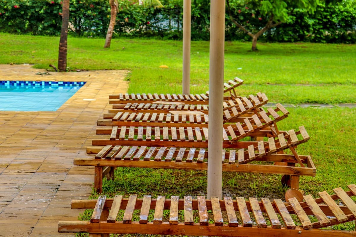 Tu estudio Coastal Haven está ubicado en una villa con: ✦ Aire acondicionado (se paga por separado) Lavadora y ✦ secadora ✦ Back Generator Piscina ✦ residencial ✦ Limpieza gratuita cada 2 noches ✦ Gimnasio, spa y salón de belleza, restaurante en el hotel (se paga por separado) Ubicado en un vecindario sereno, cerca de lo que atrae a los huéspedes a Nyali: A ◆ 7 minutos a pie de Wild Waters y el campo de golf Nyali. ◆ A 15 minutos caminando de la playa. ◆ A 5 minutos en coche de centros comerciales, clubes y restaurantes. ◆ A 10 minutos en auto de Char Choma ◆ A 15 minutos de Go-Kart ◆ A 20 minutos de la ciudad. ◆ A 30 minutos del aeropuerto y SGR.