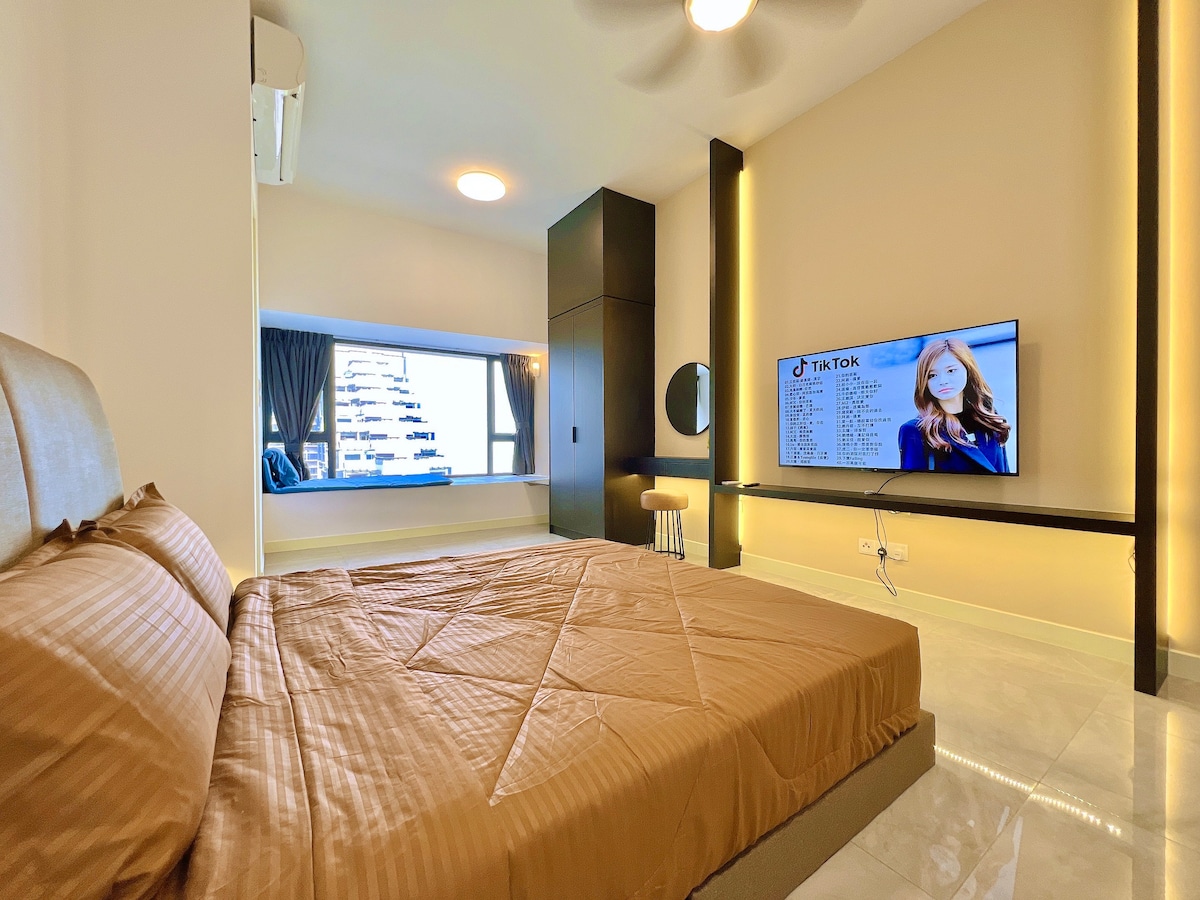 Soy Kit, esta es mi primera unidad, especialmente diseñada con una habitación grande (1 cama queen y 3 camas individuales), una sala de estar con sofá, Smart TV, wifi, ventilador, aire acondicionado, cocina (para cocinar ligeramente) y balcón frente a la piscina. Esta unidad está situada en el centro de la ciudad de Malaca, Kota Syahbandar, Atlantis Residence. Aquí se proporciona la piscina y el parque acuático más grandes de Malaca, parque infantil. Bienvenido a mi casa y disfruta de unas dulces vacaciones. .