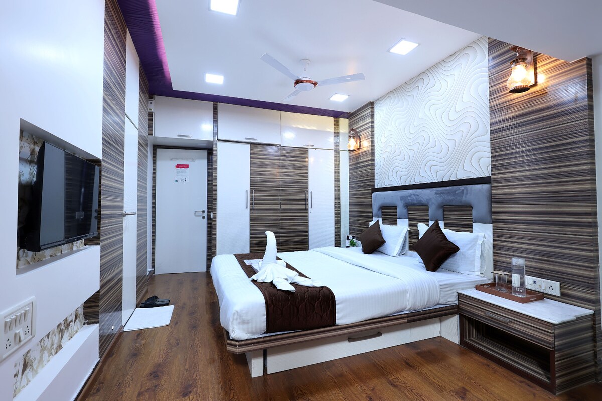 Este espacio único irradia lujo en la famosa reserva del parque nacional de Mumbai que preserva gran parte de la flora y fauna de la ciudad. Es un bungalow de 3 plantas en el que 2 pisos están disponibles para los huéspedes. Rodeado de naturaleza pero accesible a la ciudad, (a un minuto de la carretera exprés occidental/transporte público), es el lugar perfecto para una estancia cómoda y relajante cerca de la acción de Bombay. El apartamento ofrece una amplia sala de estar con baños privados, agua caliente, camas tamaño queen y aire acondicionado.