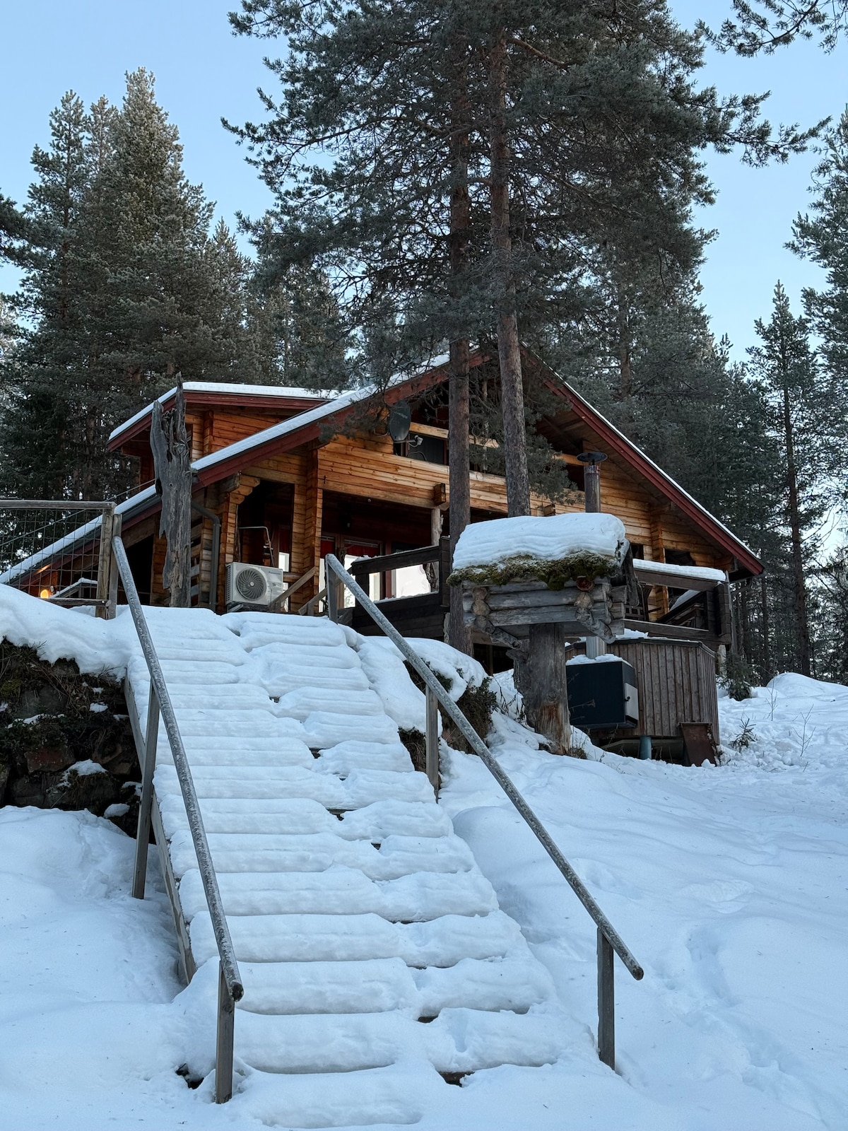 Auténtica cabaña de troncos finlandesa lejos de las masas turísticas y la contaminación lumínica con vistas a los montes Pallas. La cabaña se calienta con electricidad, pero también hay una chimenea que da calor y crea un ambiente agradable y acogedor. La leña está incluida en el precio. La naturaleza comienza justo cuando sales. No hay contaminación lumínica, por lo que el cielo es muy claro. Si la aurora boreal está en el cielo, puedes verla desde la puerta de tu casa. El lago Jeris está a 1 km. Hay wifi en la cabaña.