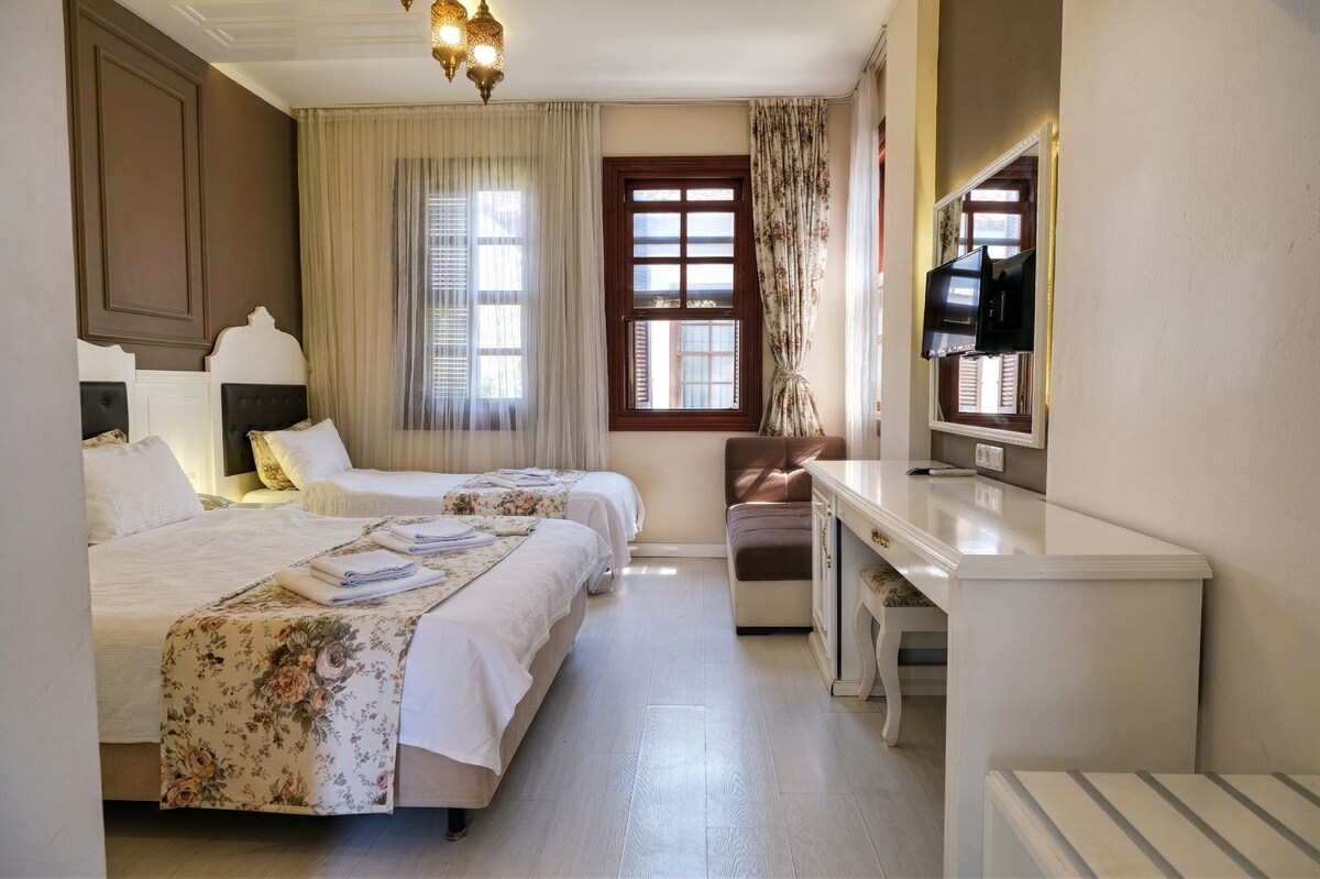 Nuestras instalaciones están en la calle más hermosa de Kaleiçi, que huele a historia, y tiene casas de la arquitectura otomana con su excelente historia. Sentirás la magia de la historia en las bonitas calles de la zona. El hecho de que la mayoría de nuestros huéspedes sean hechos por familias es porque estamos de su lado en cada etapa de su viaje, ya que somos un negocio familiar. Nos gustaría darte la bienvenida a nuestro hotel seguro y pacífico donde organizamos la historia.