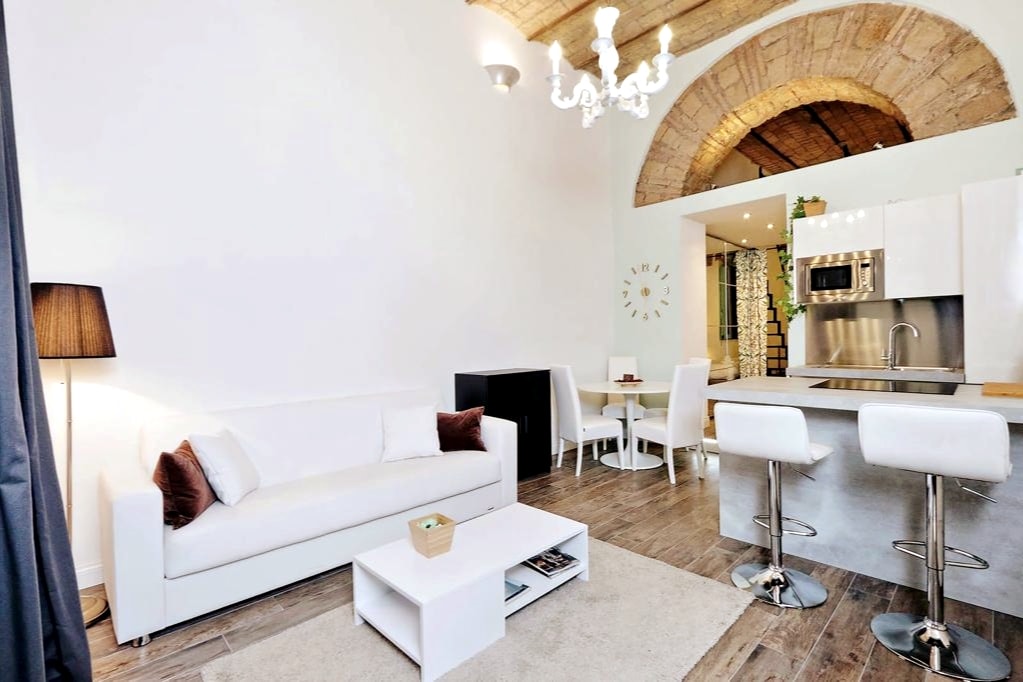 Nestled within a historic building facing one of the most iconic squares in the world, this one-bedroom apartment is located on the first floor and boasts modern amenities and an enviable patio, perfect for alfresco dinners. Ideal for couples or small families, the apartment features top-notch A/C system in all rooms, multi-room wireless sound system, steam bath as well as bathtub . Step outside the front door to toss your coin and immerse yourself in the lively atmosphere of the city center.