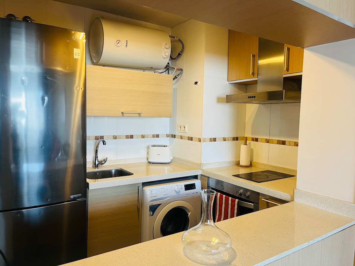 Apartamento en primera línea de playa, moderno y con todos los servicios y equipamientos. Ubicación inmejorable para disfrutar del paseo marítimo, comer en lchiringuitos y visitar la ciudad. Ideal para disfrutar todo el año con la familia o trabajar una temporada en remoto. Cuenta con dos dormitorios con amplios armarios, dos baños (uno con ducha, otro con bañera), amplio salón, cocina, terraza con vistas parciales al mar y además incluye una plaza de parking con cargador de vehículo eléctrico.