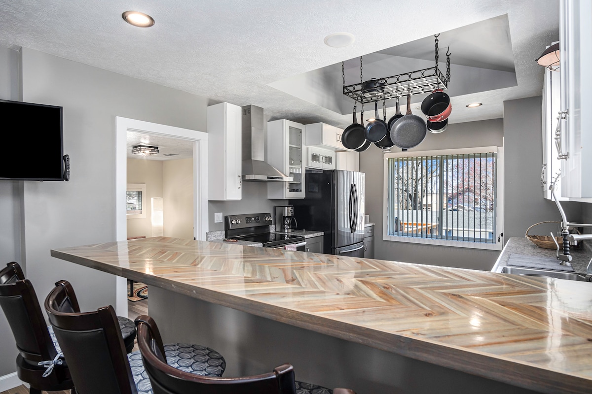 ¡Quédate en la encantadora "Harbor House"! Ubicado en el histórico barrio de NIMS, estamos ubicados justo en el centro de lo mejor que Muskegon tiene para ofrecer. A solo 10 minutos en coche de la famosa playa de Pete Marquette, a 5 minutos del centro y a 2 cuadras del lago Muskegon. ¿Eres un amante del desayuno? ¡No digas más! ¡Estamos ubicados a solo unos pasos de la cafetería Lakeside, la favorita de los lugareños! Y cuando esté listo para relajarse, relájese y disfrute de la hora dorada en la sala de 3 estaciones.