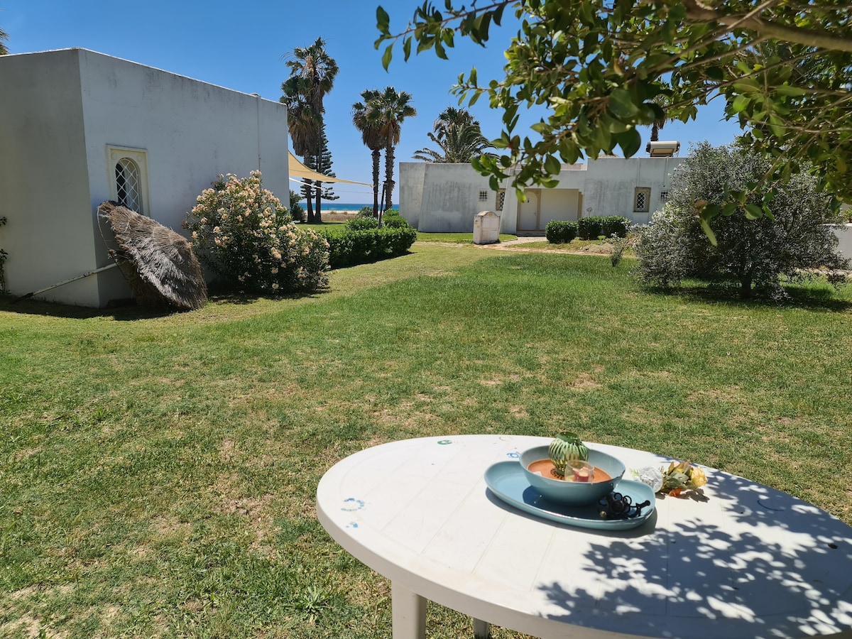 magnifique bungalow au bord de l'eau à Hammamet sud (rond point jinene Hammamet situé à l'hôtel the mirage resort&spa ) Vue sur mer Accès piscine, terrains de tennis, animations de l'hôtel, théâtre le soir Parking sécurisé Espace en commun bien gardé (caméras de surveillance et équipe de gardiennage) Restaurants à côté À 10 minutes à pied du port de plaisance yasmine hammamet disponible que le mois de juin et septembre location à la semaine idéalement