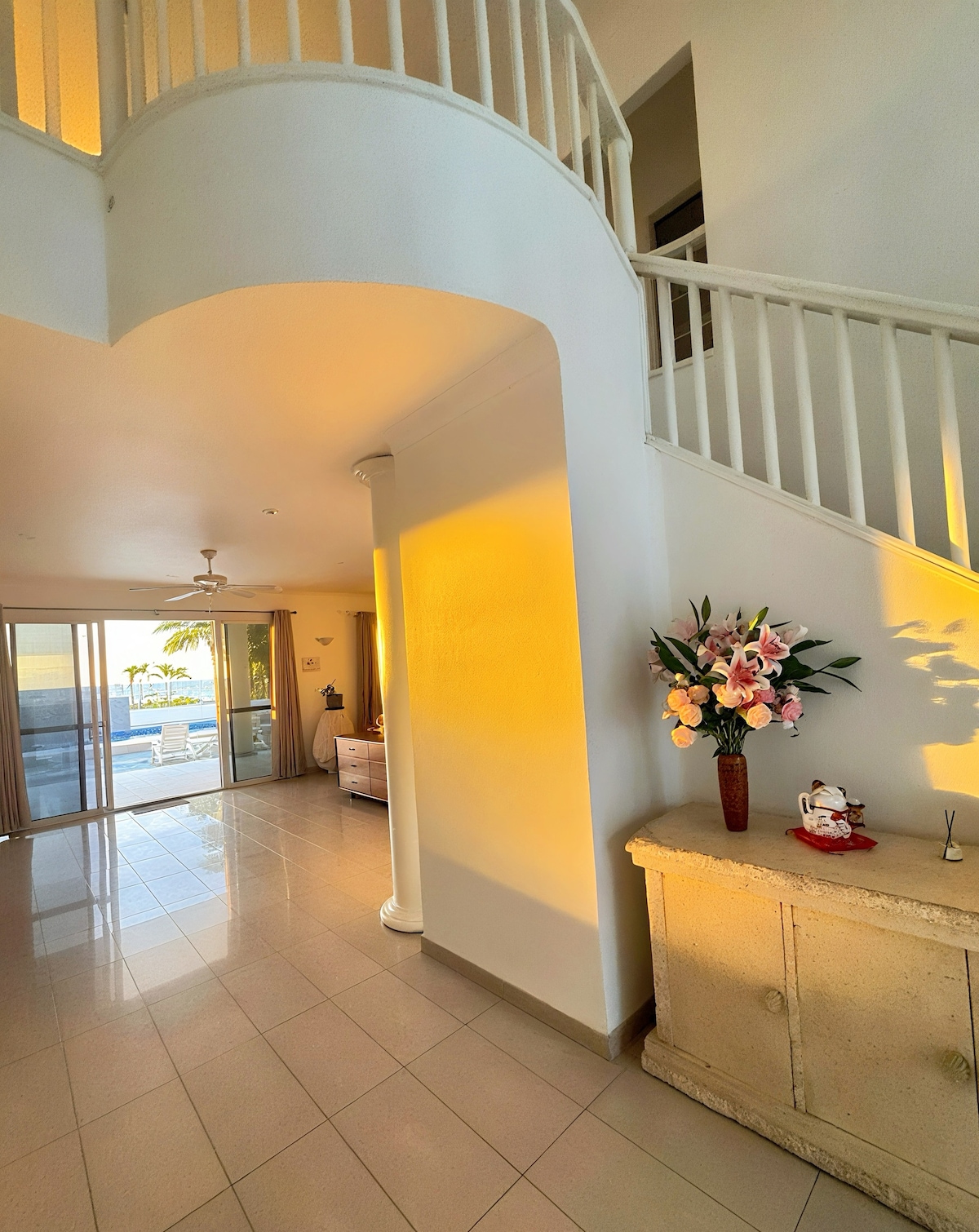 Disfruta de esta espaciosa villa con techos altos abovedados, 2 habitaciones con baño privado con duchas interiores y exteriores en la habitación que elijas. ¡Junto a la playa! La villa perfecta para familias, parejas o viajeros solos. Piscina grande, red de voleibol, carrito de golf, juego de Cornhole, tabla de surf de remo, bicicletas. ¡Mucha diversión para todos! Cuidador a tiempo completo para todas tus necesidades o privacidad si la necesitas. Tranquila, aislada si quieres estarlo, o pasea hasta el puerto deportivo local, el restaurante y el centro vacacional.