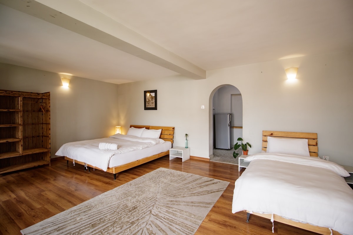 Welcome to your spacious home in Patan at hostel nextdoor. We are located near old Patan, a perfect place to explore spiritual philosophies and traditional crafts of Nepal. This studio apartment is an airy room with en-suite bathroom and a cosy, equipped kitchen with microwave, fridge, and tea/coffee station. There is also a workdesk and a sitting area. A perfectly private space in a hostel where you can meet other travellers when you prefer. Breakfast is included in the room rate.