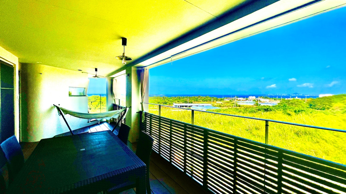 ¡Villa con vistas al mar en Kouri Island! ¡Disfrute de una barbacoa en la terraza con vistas al mar y un jacuzzi en la azotea con unas vistas espectaculares!