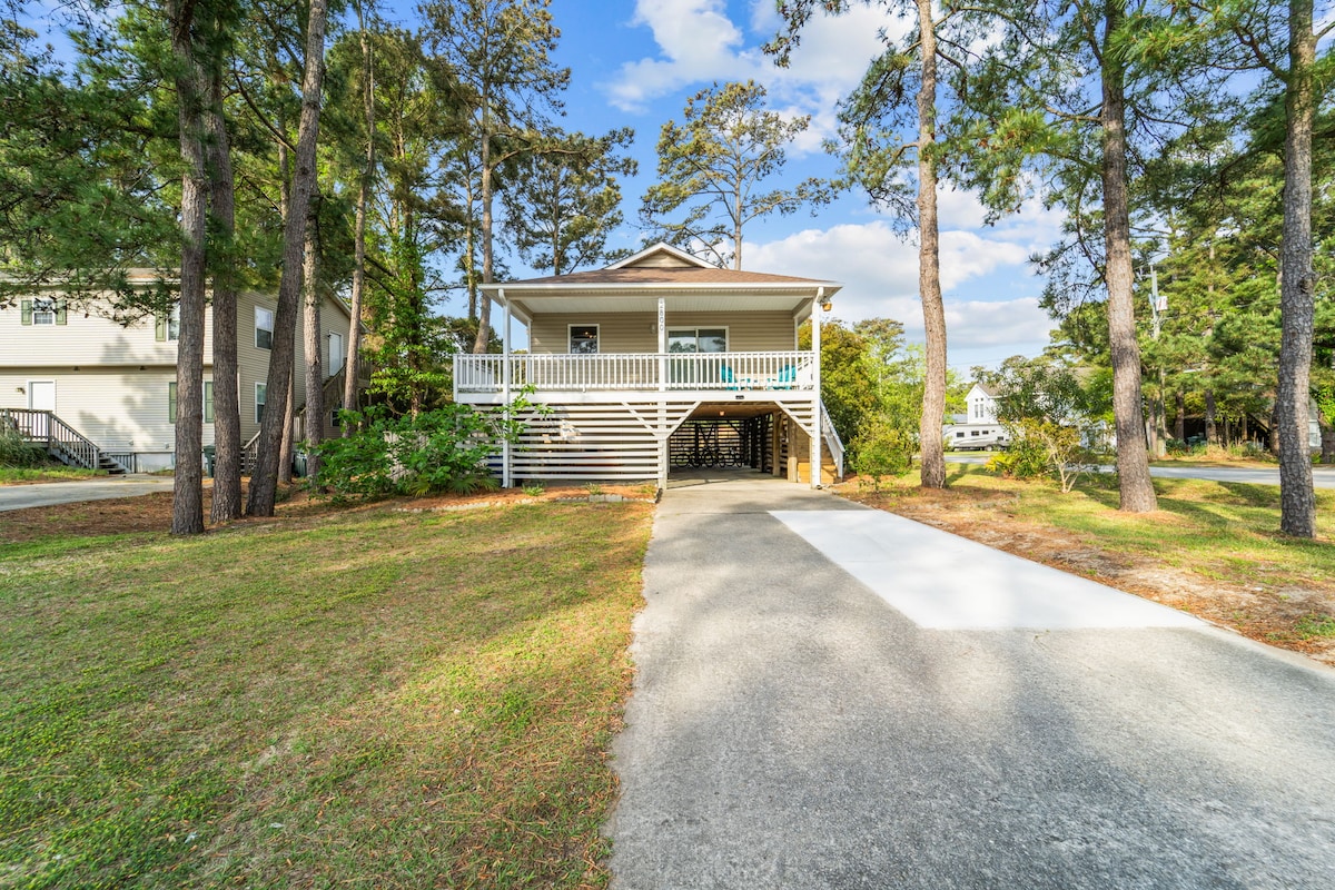 Construida en 2023 Casa moderna pequeña SUP, jacuzzi, kayaks, bicicletas, rodeado de hermosos robles. Mobiliario moderno y cómodo, todo nuevo en mayo de 2023. Toda la casa está separada y tiene un dormitorio, baño completo, sala de estar y cocina completa. Hermoso jardín de rosas y árboles que rodean el porche. Gran energía para parejas en luna de miel u otras que quieran pasar tiempo de calidad juntos. A poca distancia del Albemarle Sound y a 5 minutos en coche de la playa. YMCA también lo disfruta