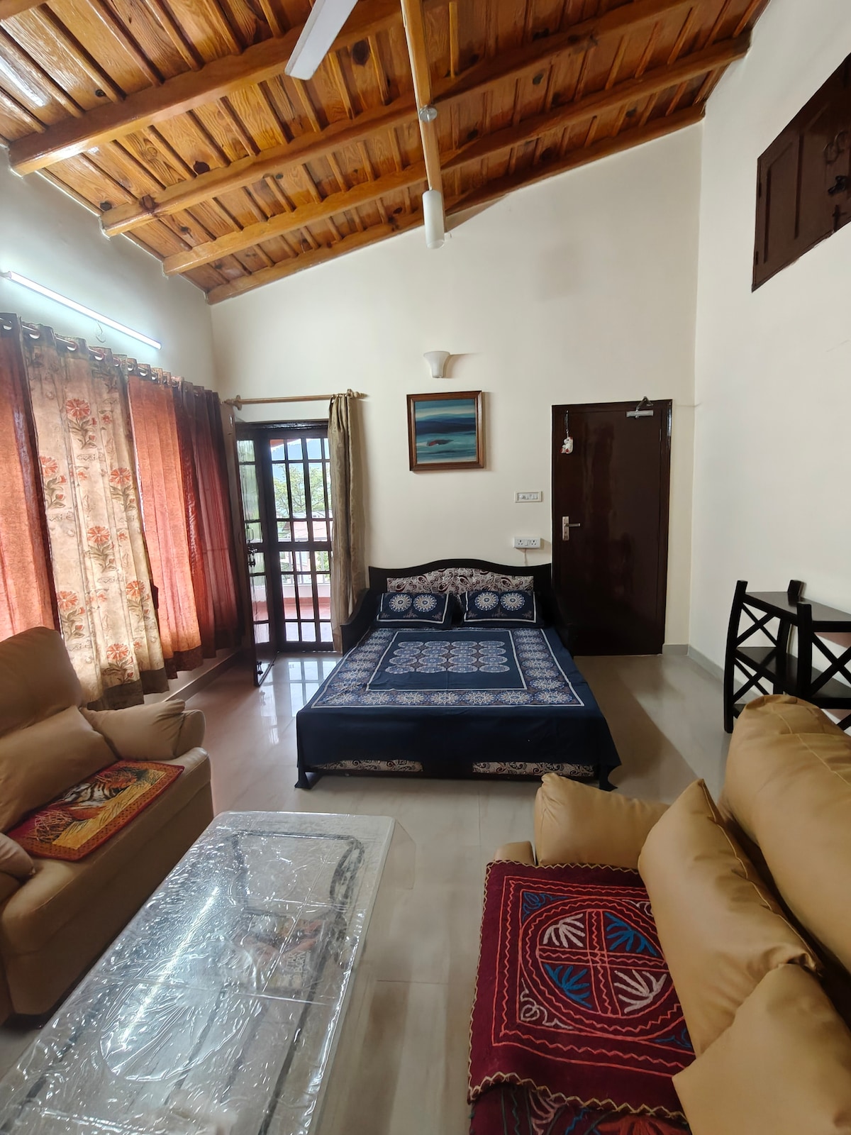 Wake up to crisp mountain air and sweeping hill views in this enchanting 1-BHK apartment. Sunlit living space, kitchenette, dining space, plush bedding, and a private balcony create a serene sanctuary to relax, reflect, and soak in nature. Thoughtful touches, cozy corners, and lush surroundings turn every moment into a sensory escape- perfect for couples, solo travelers, or small families seeking a peaceful, unforgettable mountain retreat.